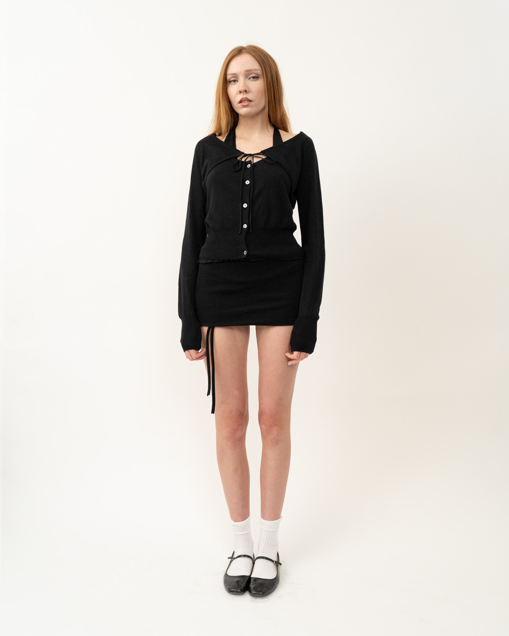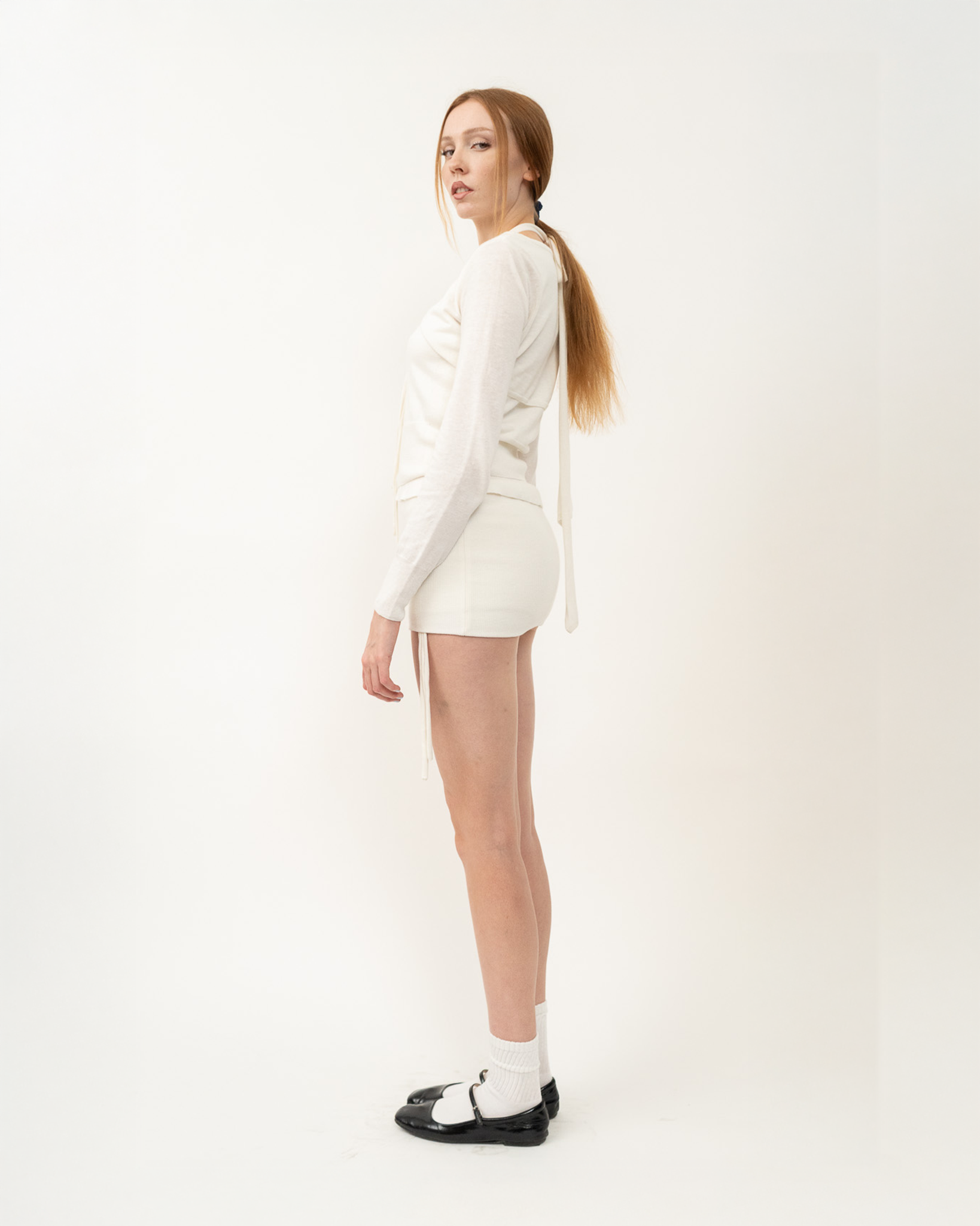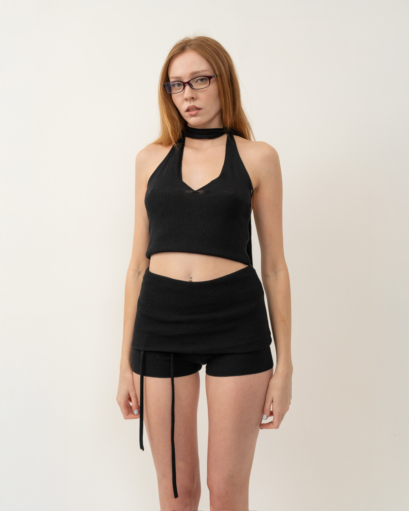 - Designed to be worn with the ribbed waist part folded down, creating a layered skirt-like look