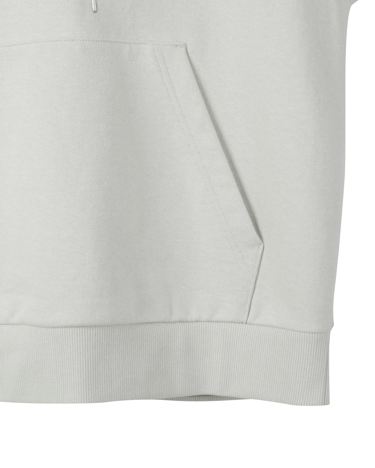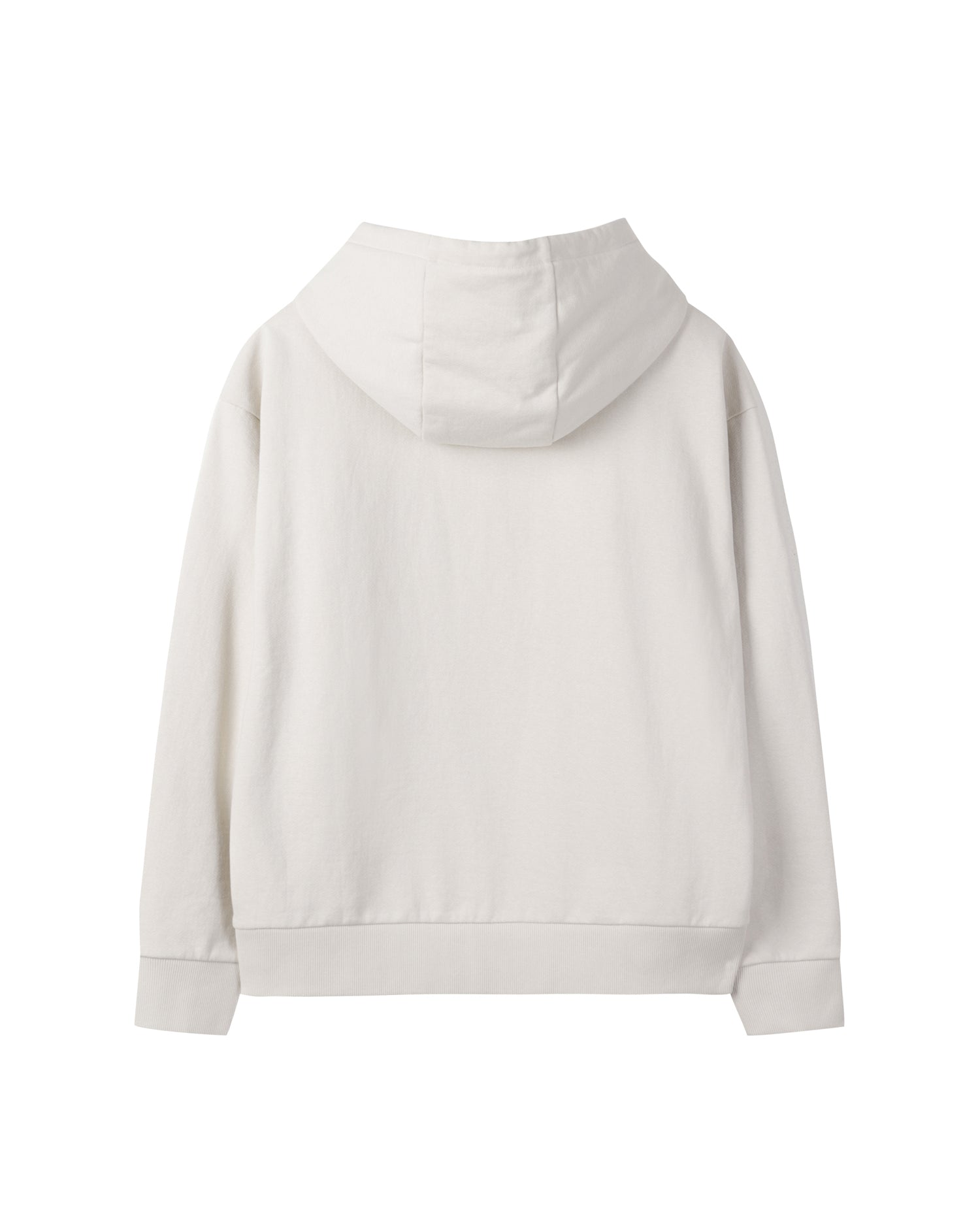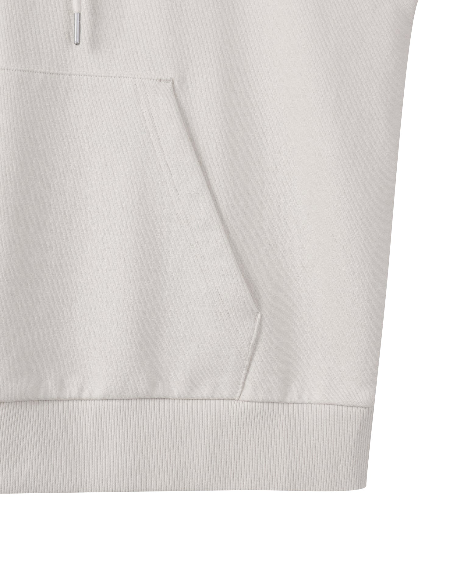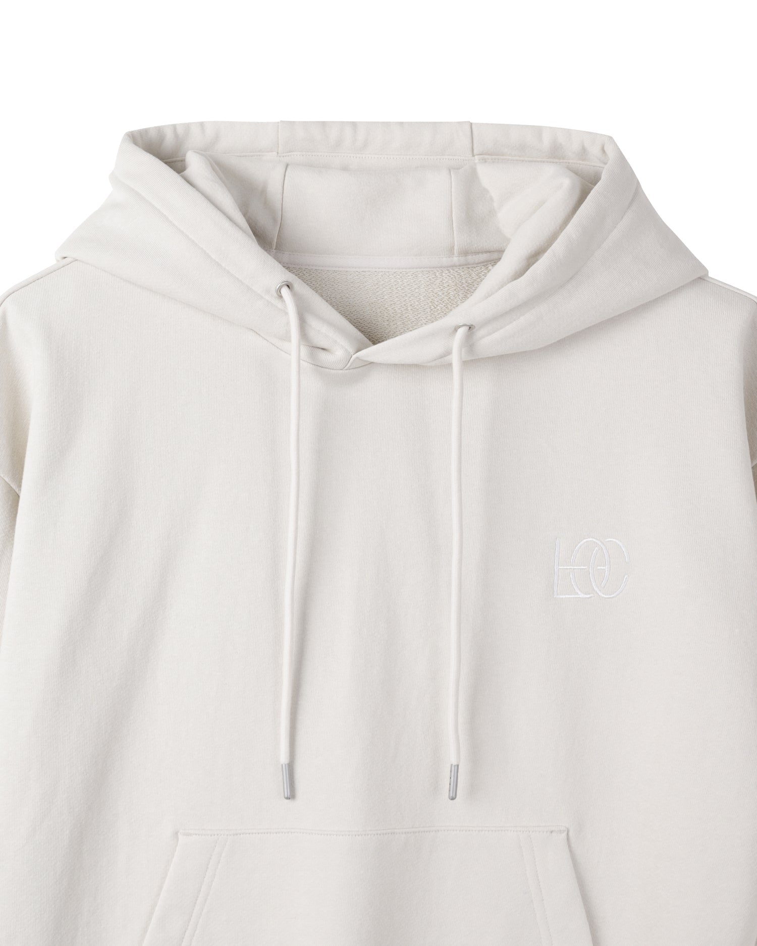 Essential Hoodie made from GRS-certified recycled cotton yarns. It features minimal branding embroidered on the front, an adjustable hood with a drawstring, and a rib-knit hem. Lightweight for all seasons.
