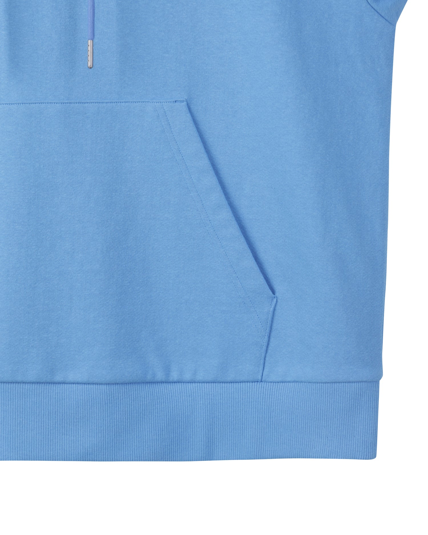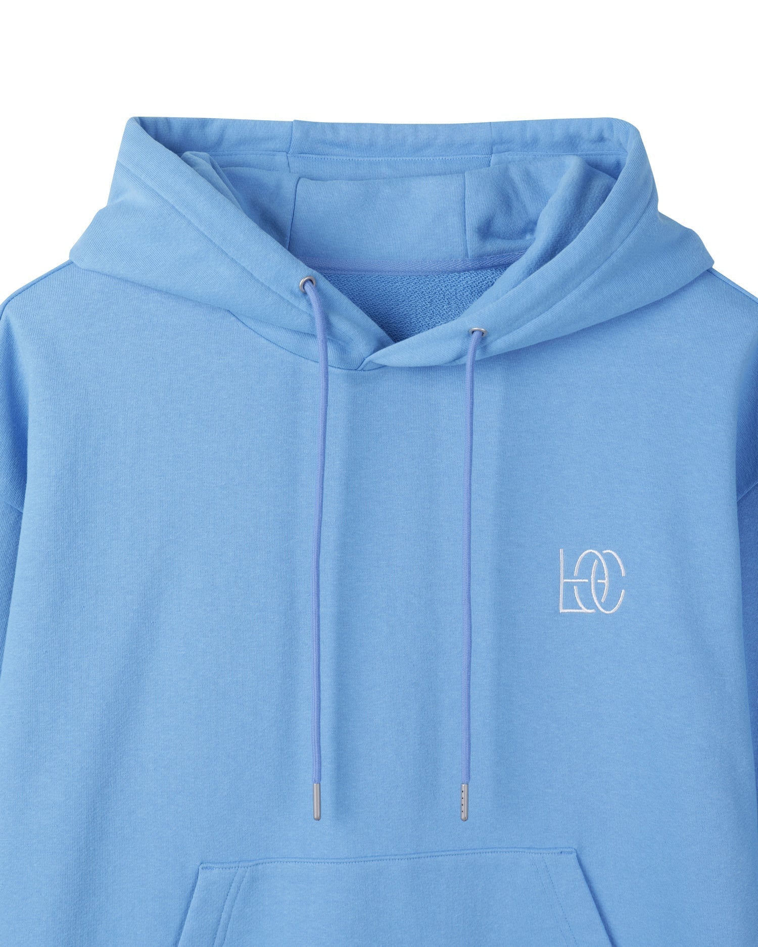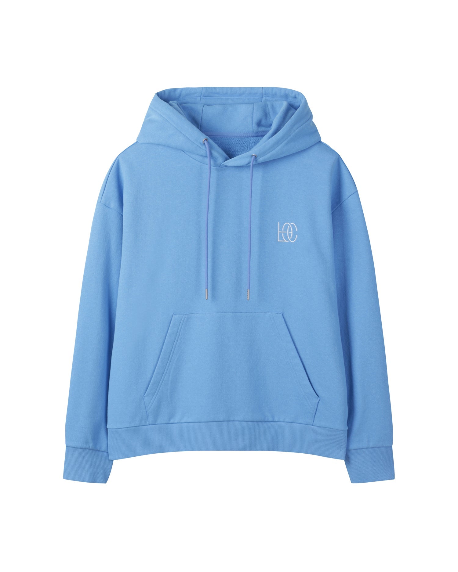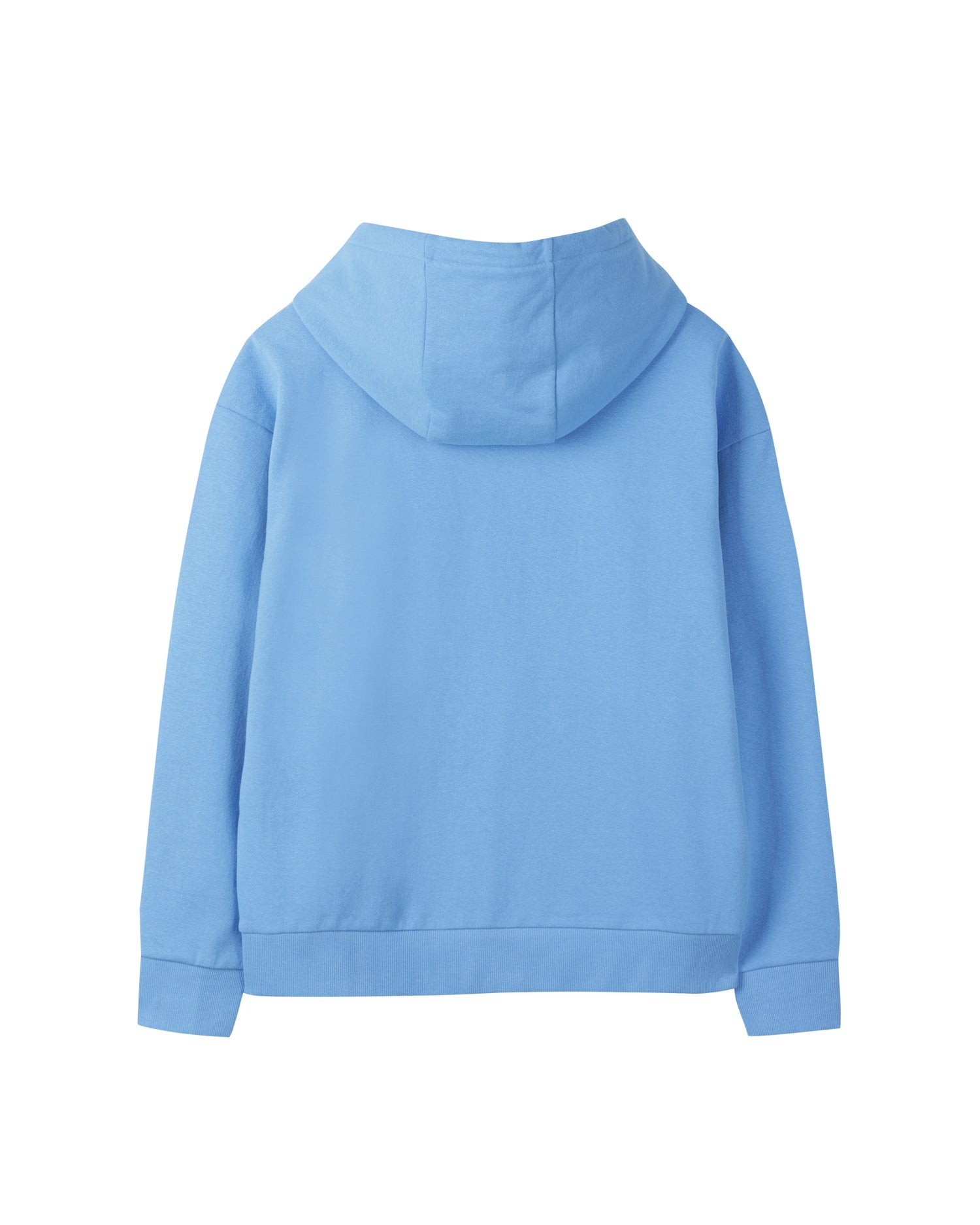 Essential Hoodie made from GRS-certified recycled cotton yarns. It features minimal branding embroidered on the front, an adjustable hood with a drawstring, and a rib-knit hem. Lightweight for all seasons.