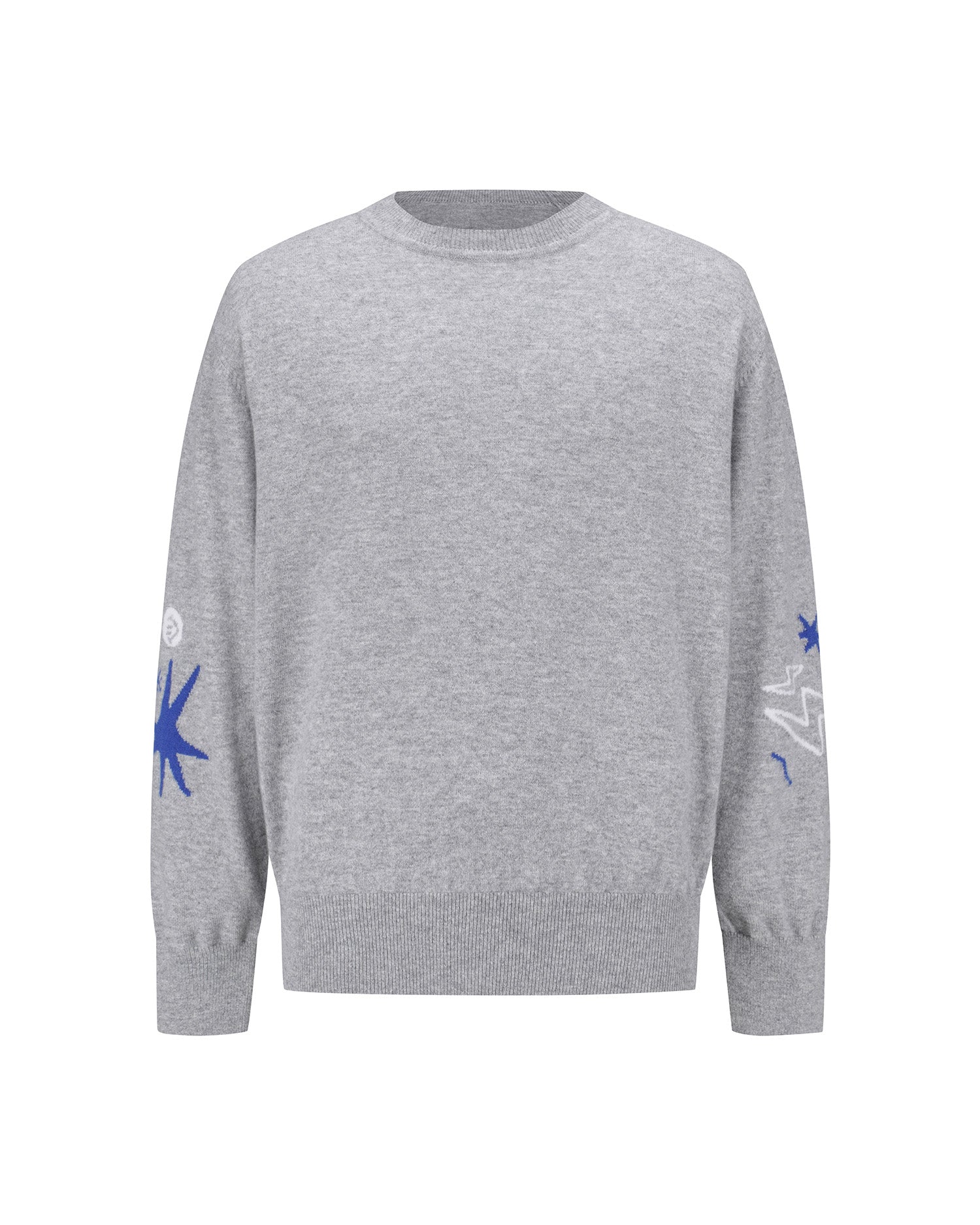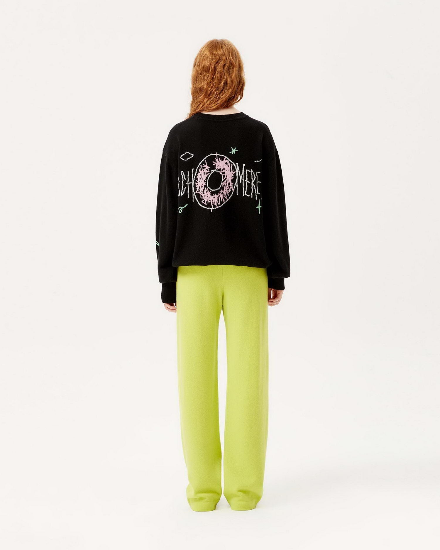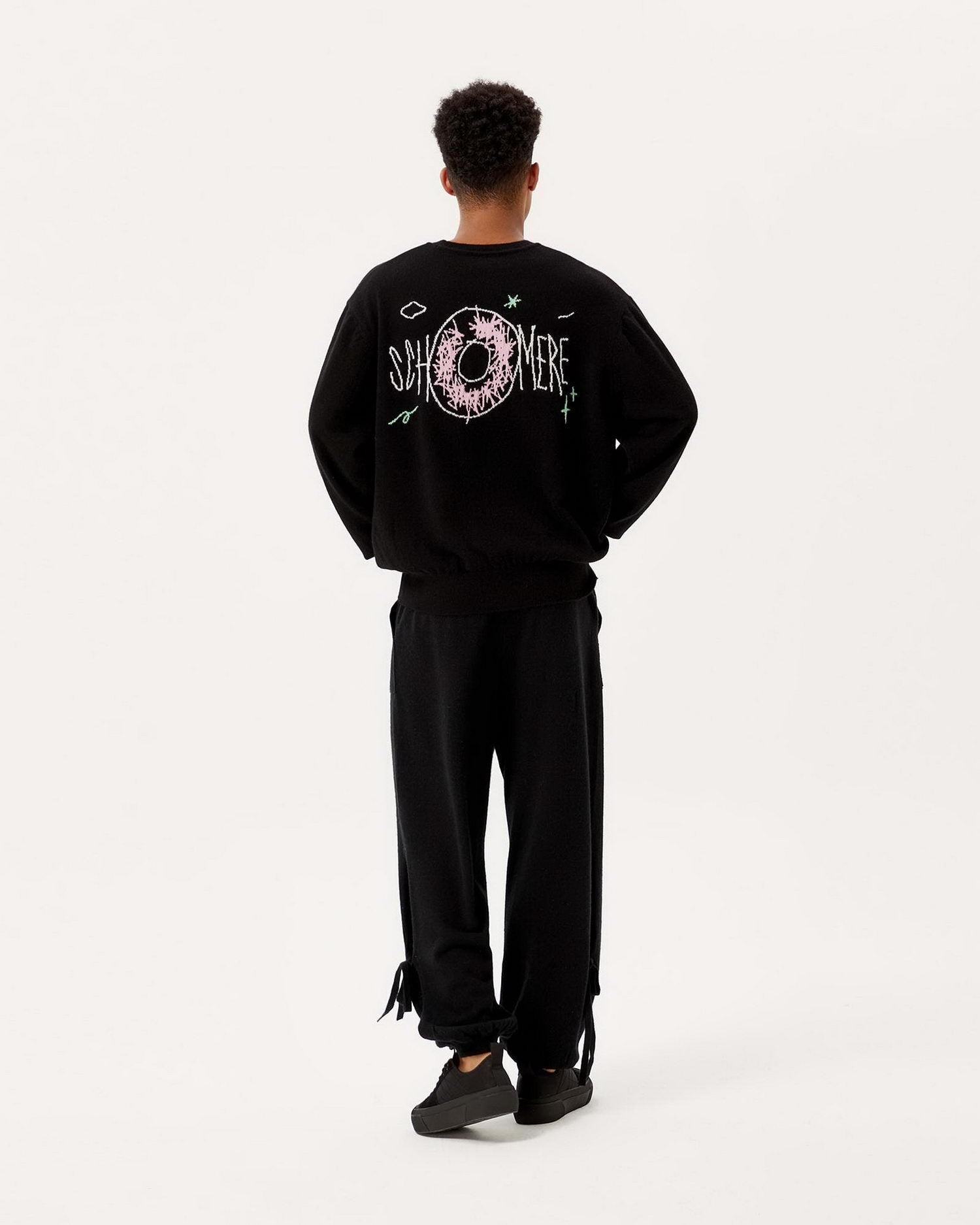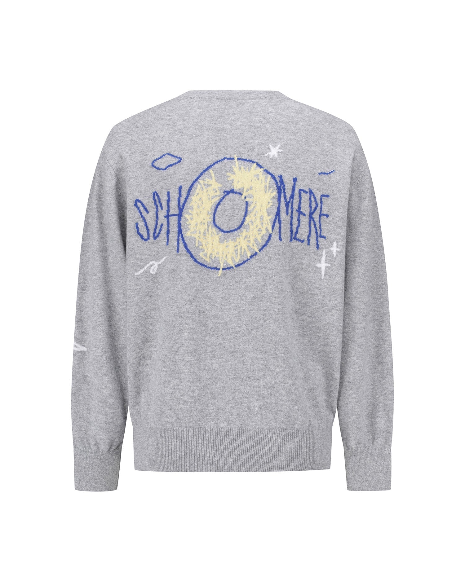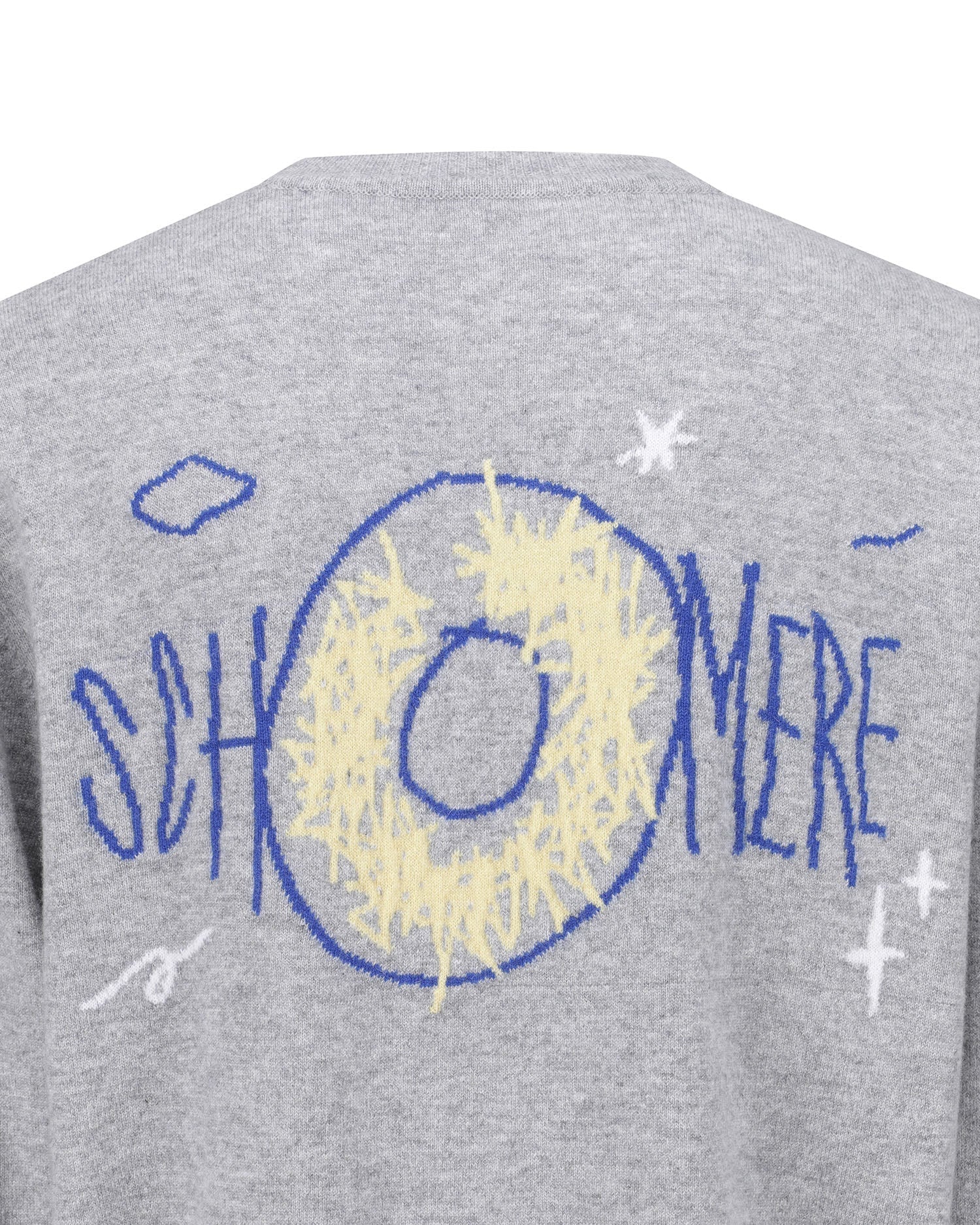 SCHMERE is a unique collection inspired by the "soft texture" of schmear and cashmere. This lineup features exclusive illustrations inspired by bagels and schmear. The graphics on the back and sleeves uniquely complete a special and distinctive look. Crafted from 100% cashmere, it offers an exceptionally soft texture. Explore a completely new dimension of cashmere with the SCHMEAR collection.