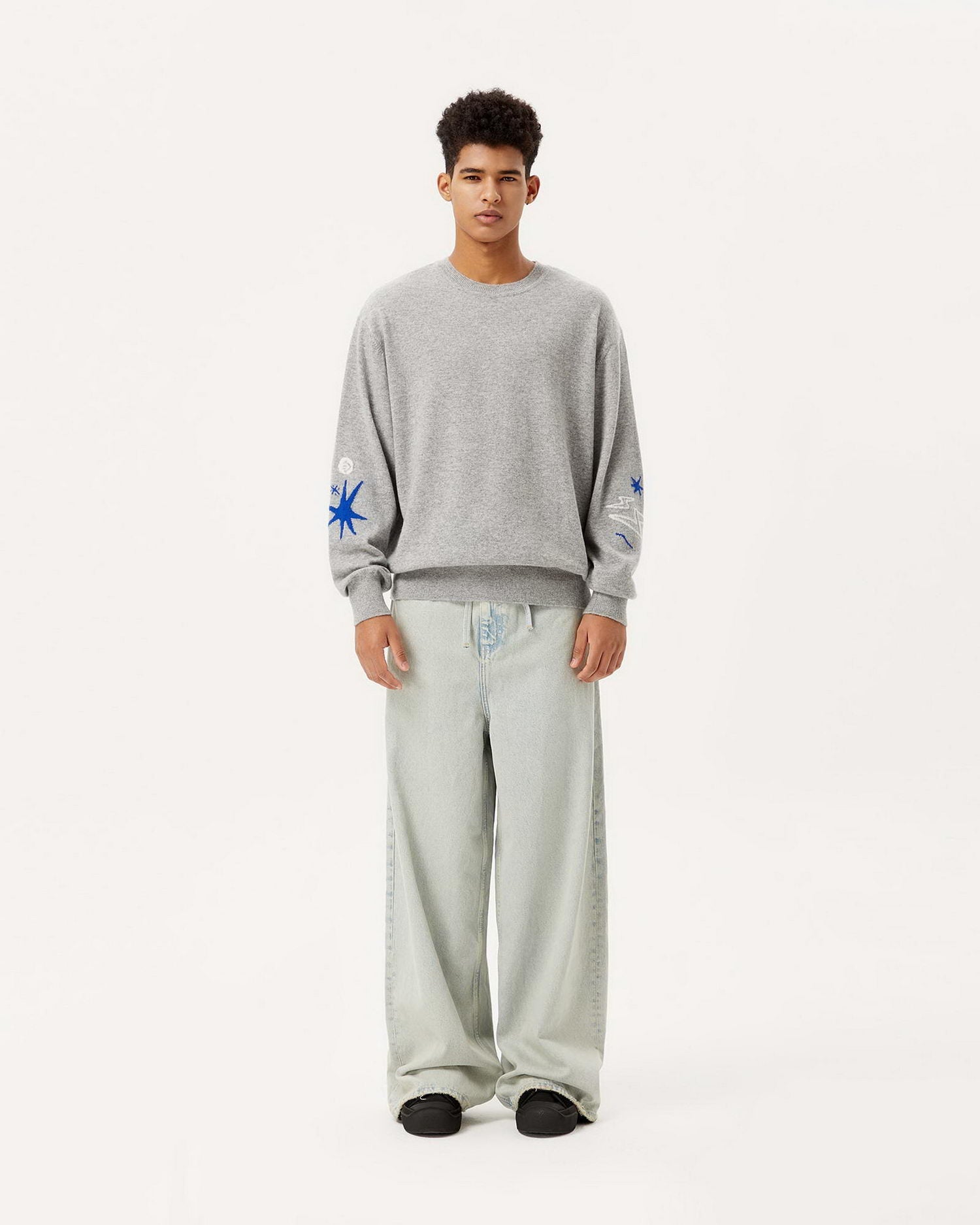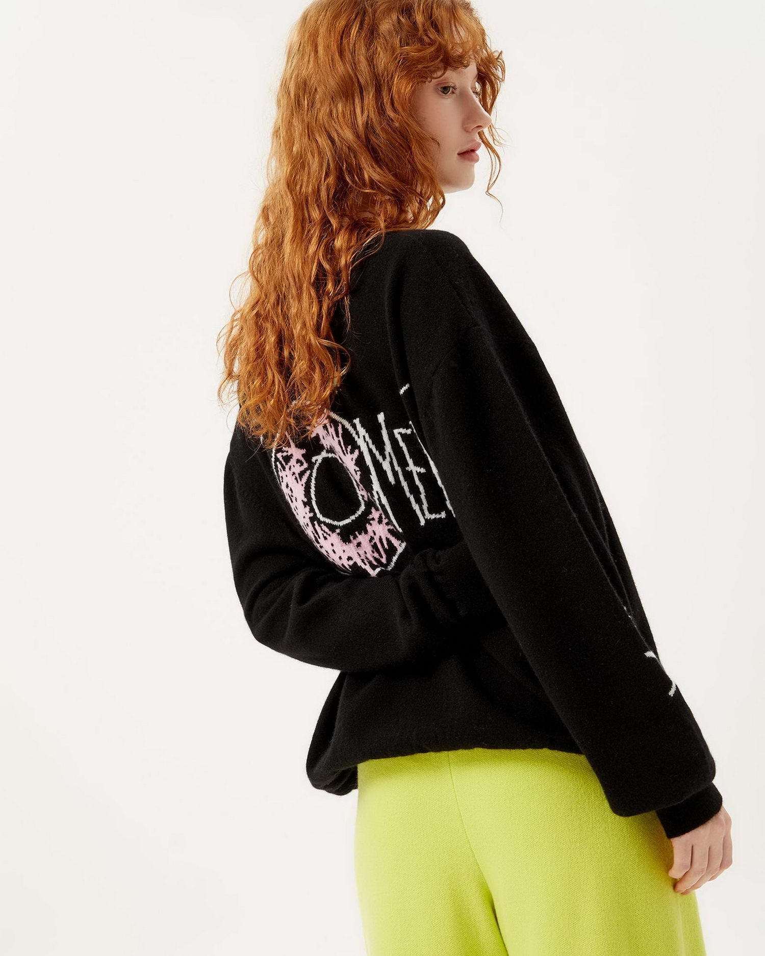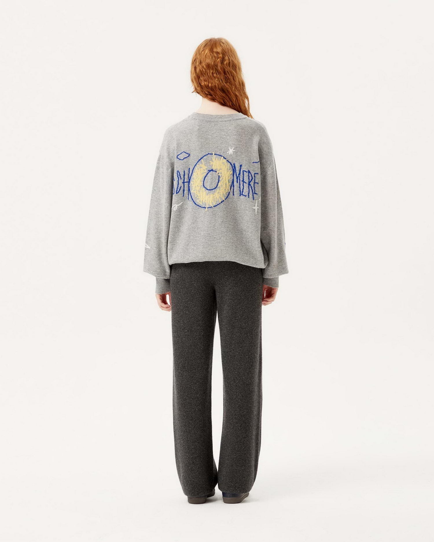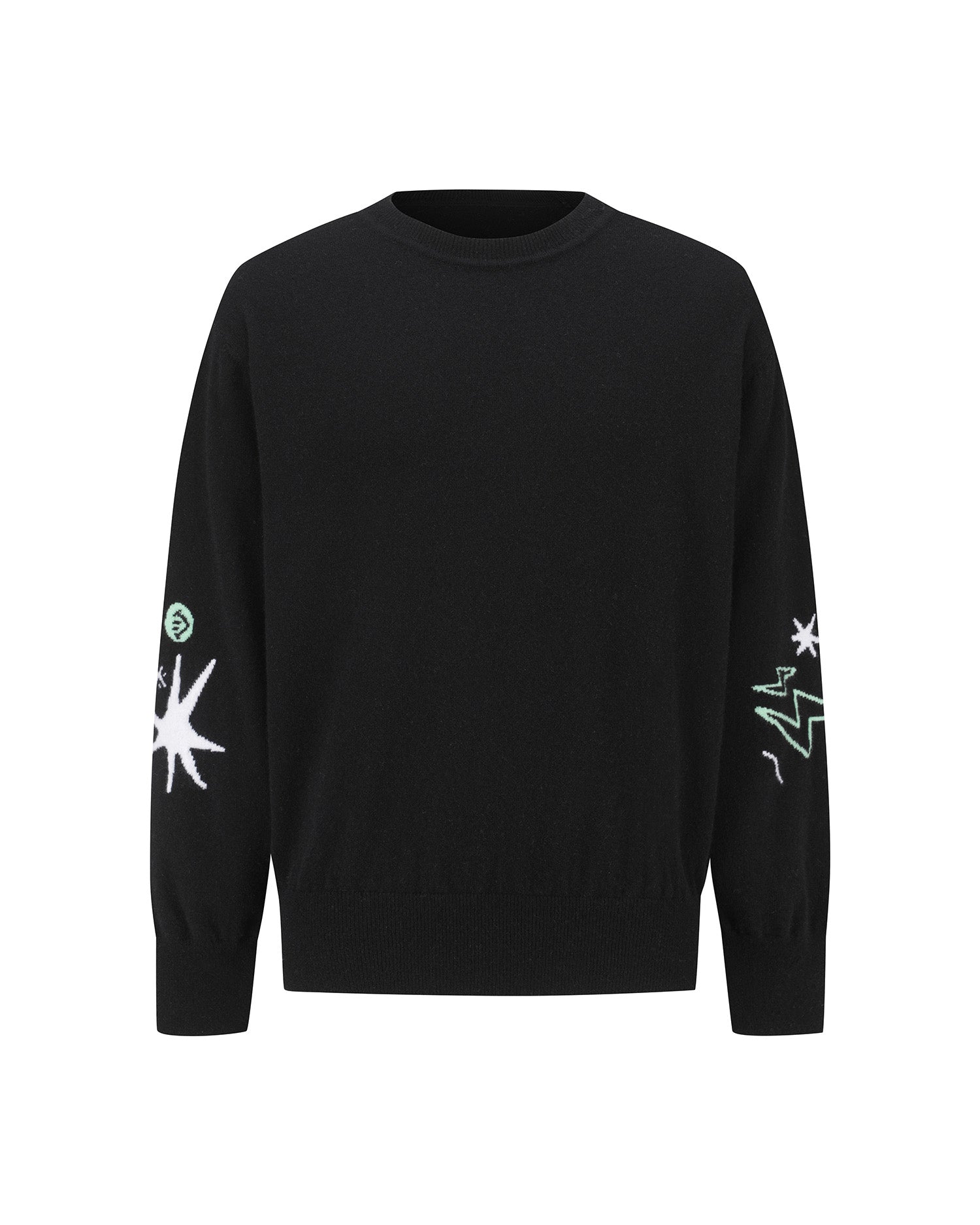 SCHMERE is a unique collection inspired by the "soft texture" of schmear and cashmere. This lineup features exclusive illustrations inspired by bagels and schmear. The graphics on the back and sleeves uniquely complete a special and distinctive look. Crafted from 100% cashmere, it offers an exceptionally soft texture. Explore a completely new dimension of cashmere with the SCHMEAR collection.
