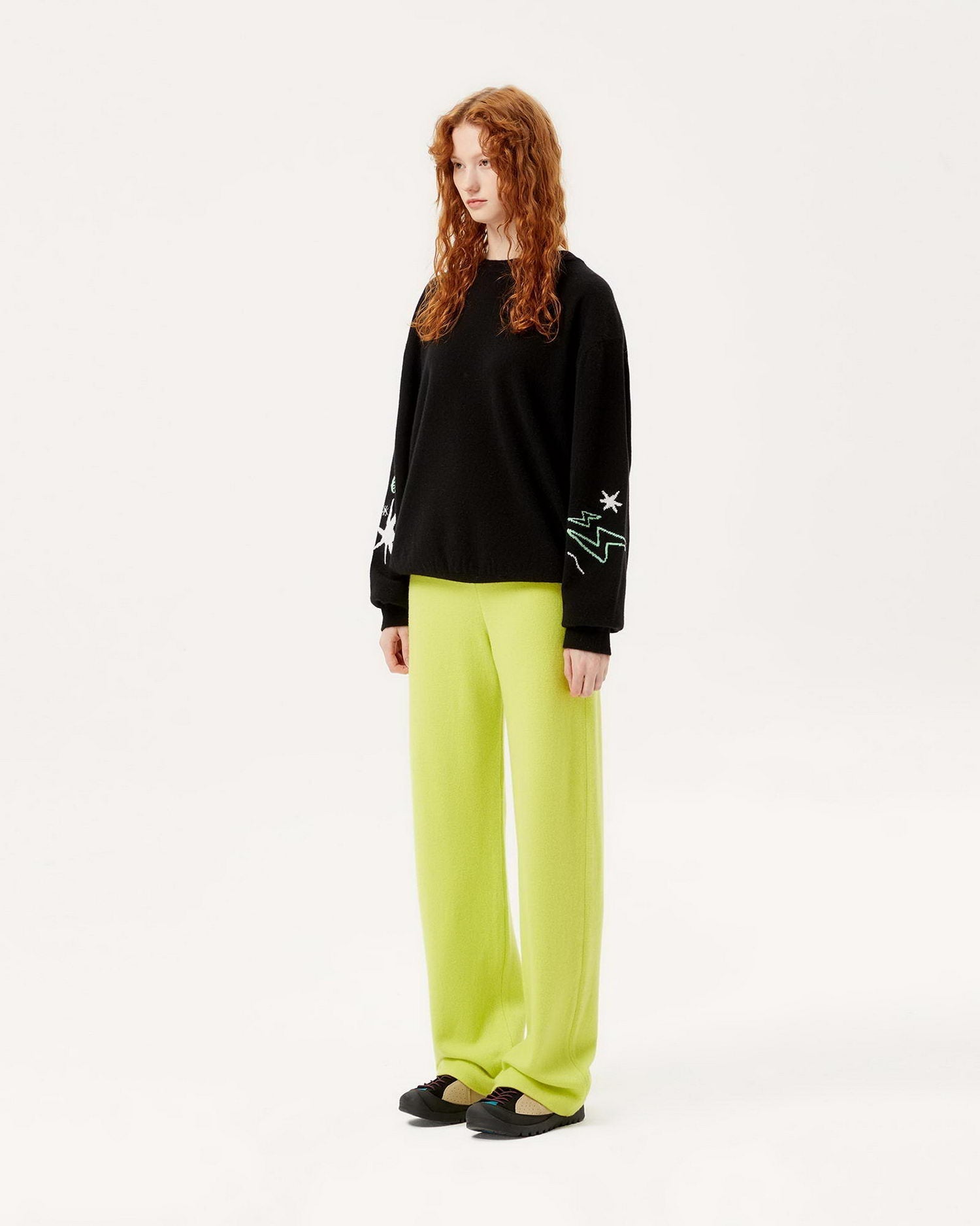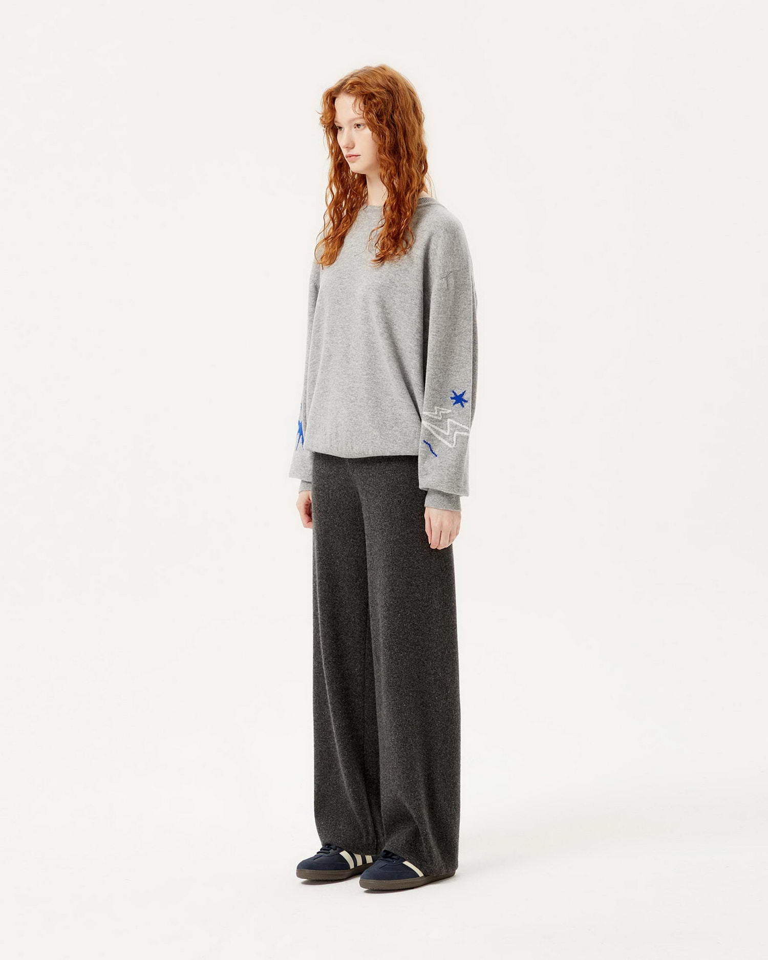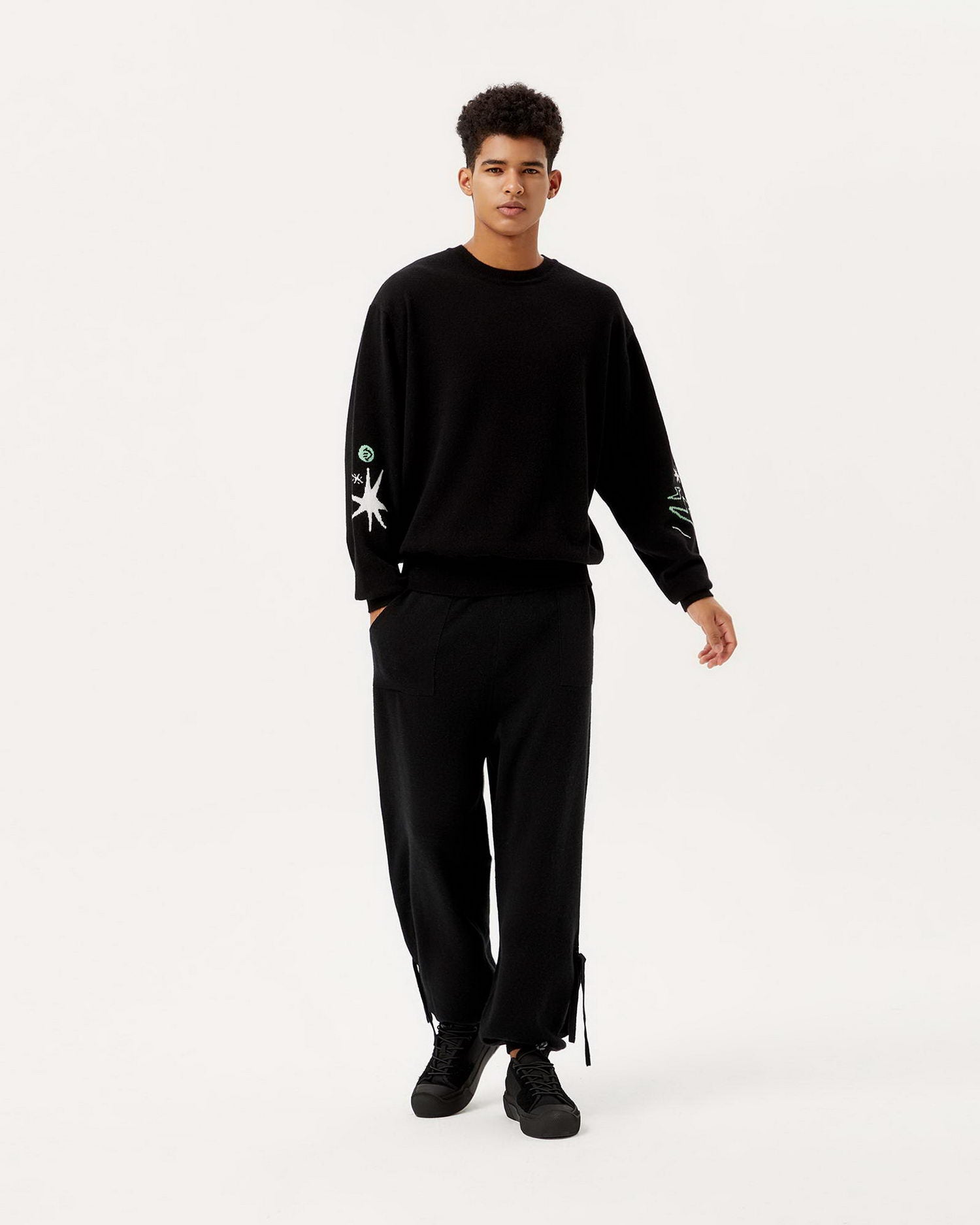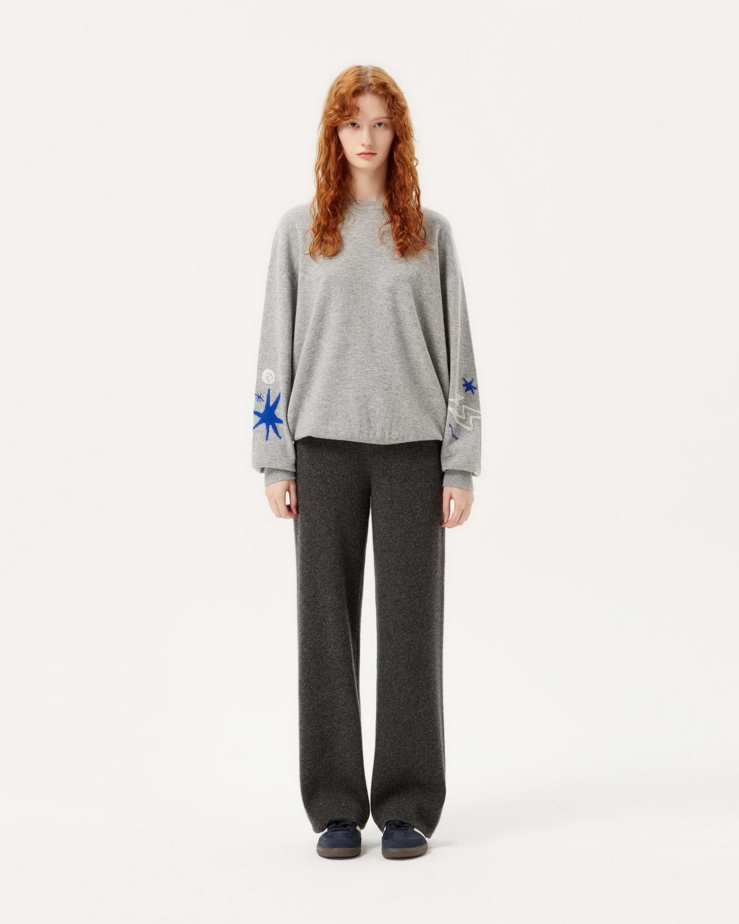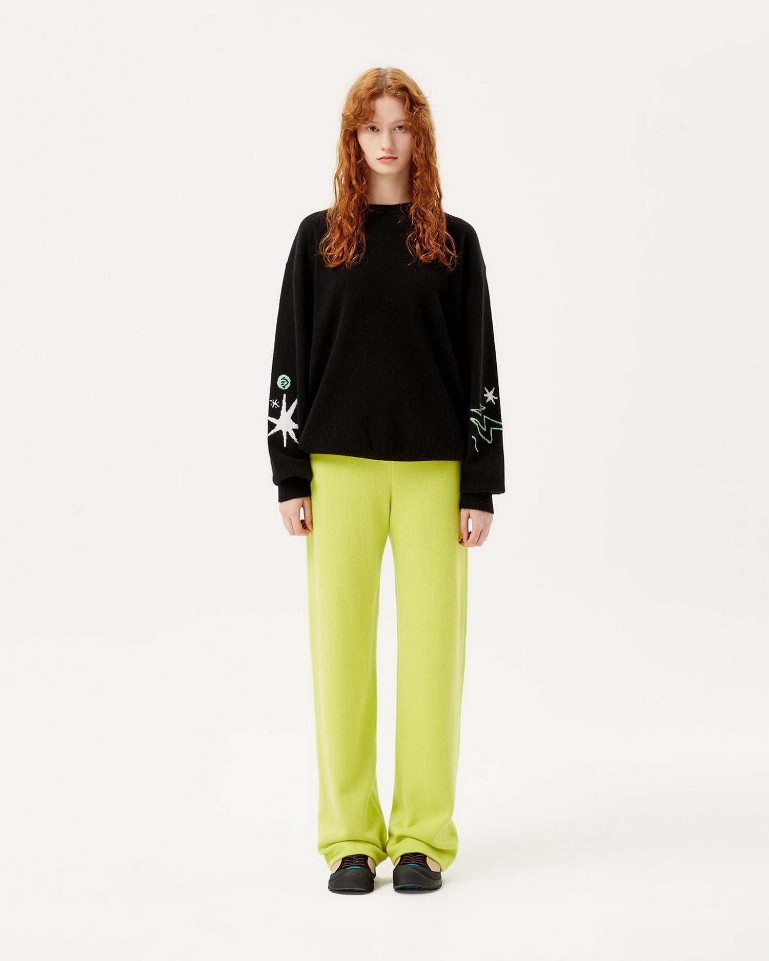 SCHMERE is a unique collection inspired by the "soft texture" of schmear and cashmere. This lineup features exclusive illustrations inspired by bagels and schmear. The graphics on the back and sleeves uniquely complete a special and distinctive look. Crafted from 100% cashmere, it offers an exceptionally soft texture. Explore a completely new dimension of cashmere with the SCHMEAR collection.