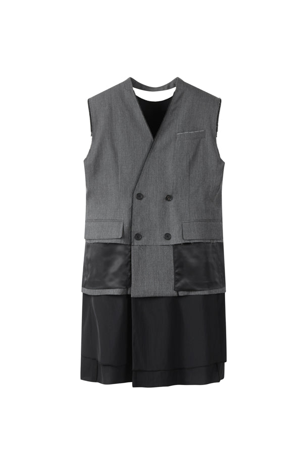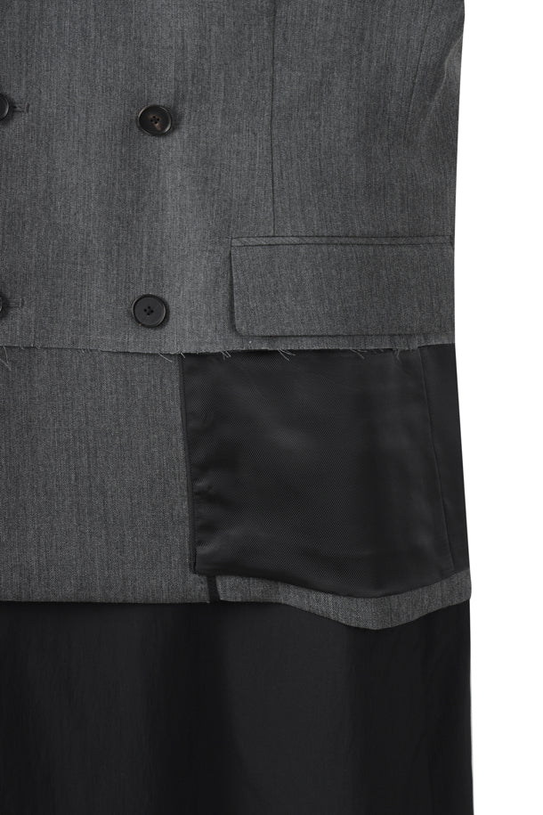 This design originated from the best jacket of a men's suit. Details: - A midi-length dress reinterpreted as a reversible design . - Elements typical of formal attire are retained throughout for a sense of formality and wit, and the structured silhouette, reminiscent of a jacket, stands out. - This item can be worn alone or layered with an inner layer to create a stylish look.