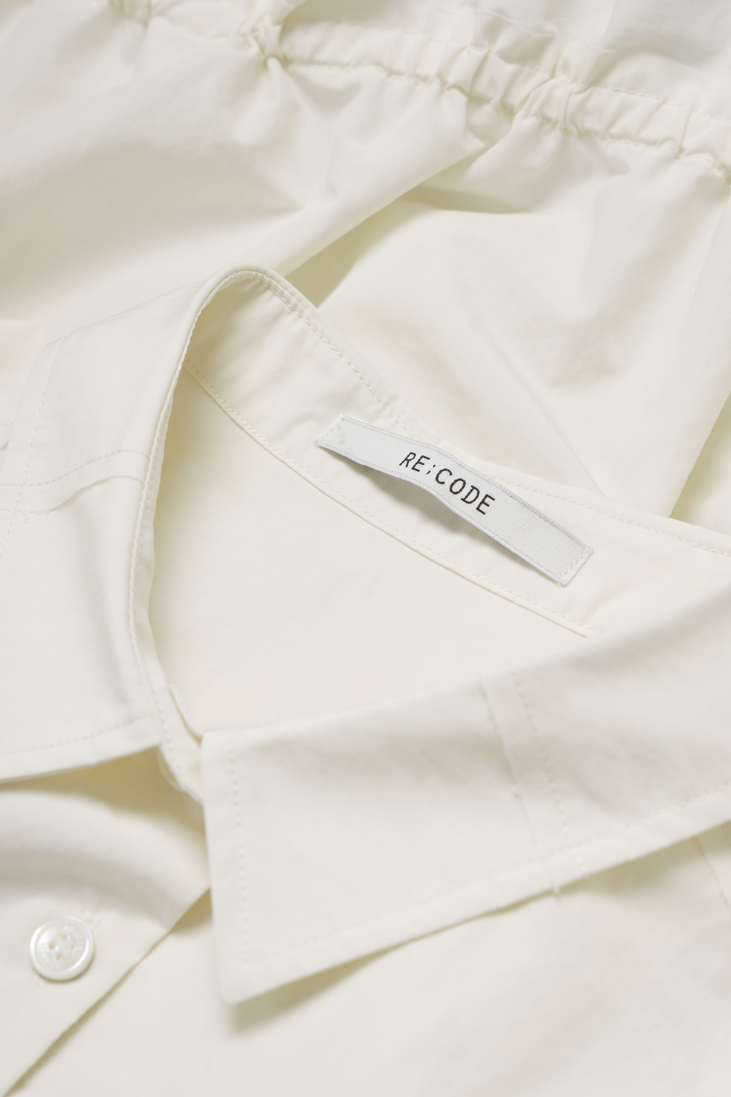 - The rough finish of the hem, shoulder and cut lines, and the sleeve line connecting the collar
