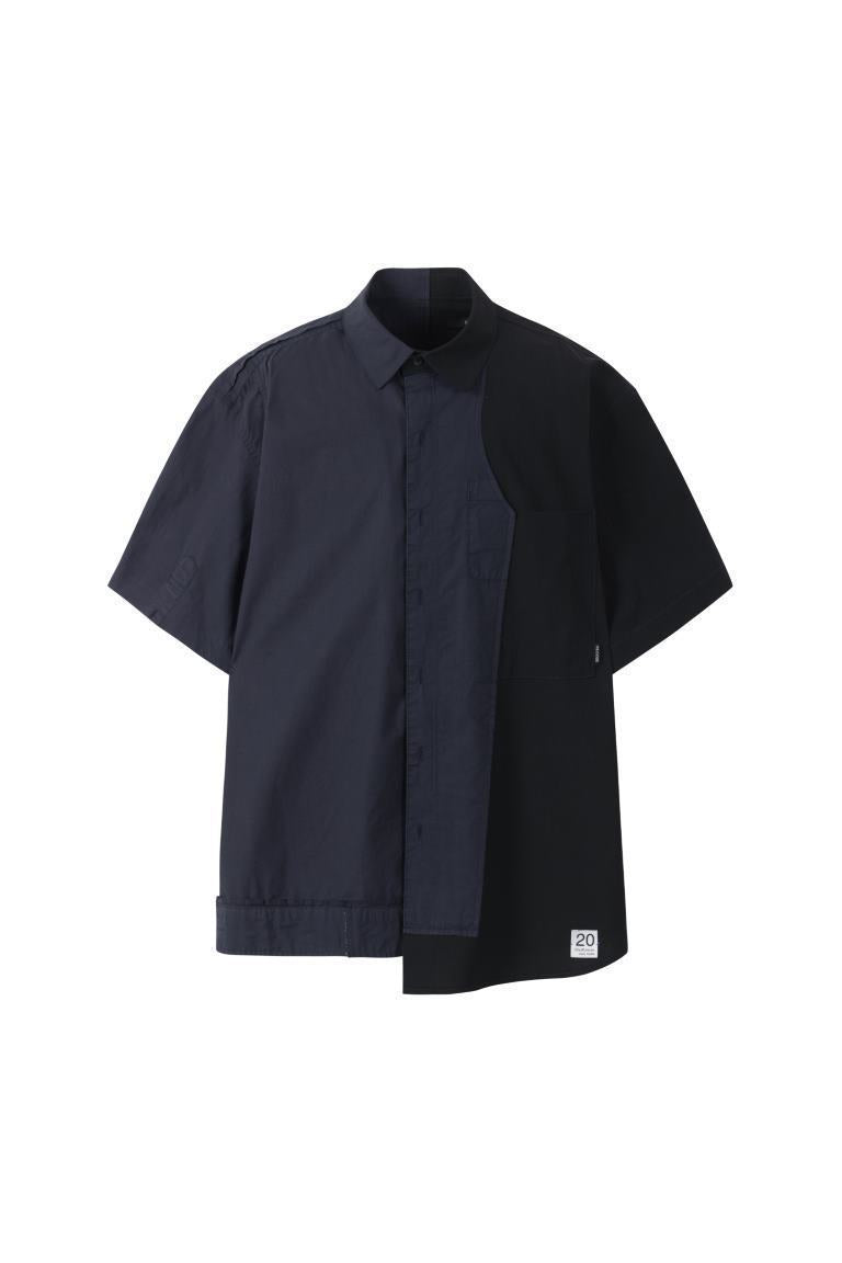 This short-sleeved shirt is completed by reassembling disassembled shirts like a puzzle. The raw-edge detailing, inspired by deconstruction, captures the unique mood of RECORD.