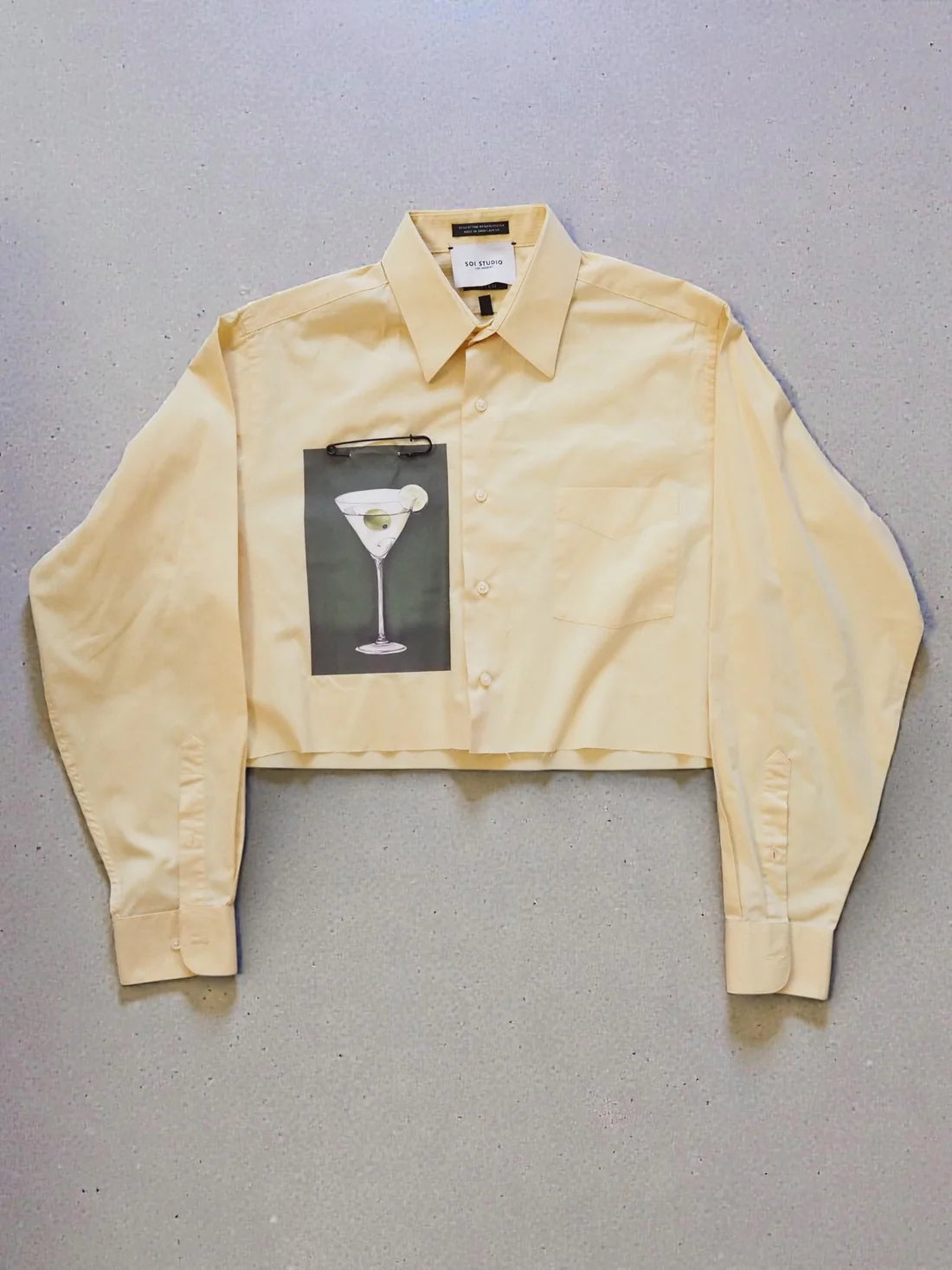 The Reworked Martini Shirt is a uniquely crafted, statement-making piece that blends sustainability with bold streetwear style. Each shirt is reworked and designed by Soi Studio, giving new life to found garments and creating a one-of-a-kind cropped design.