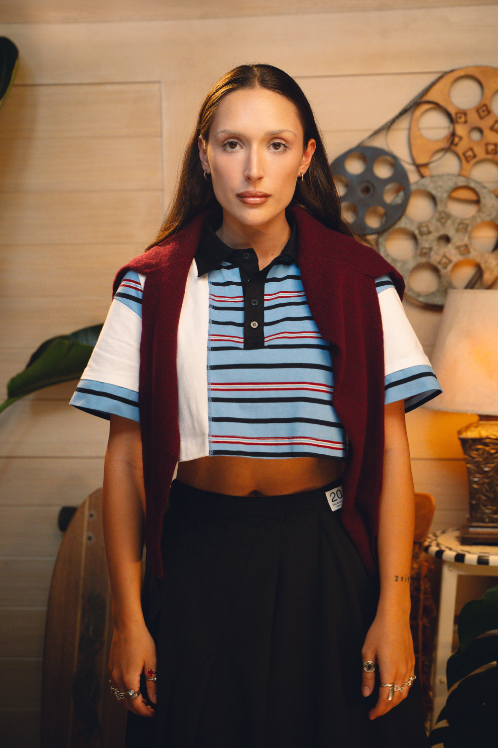 Cropped Half Split Rugby Polo Shirt