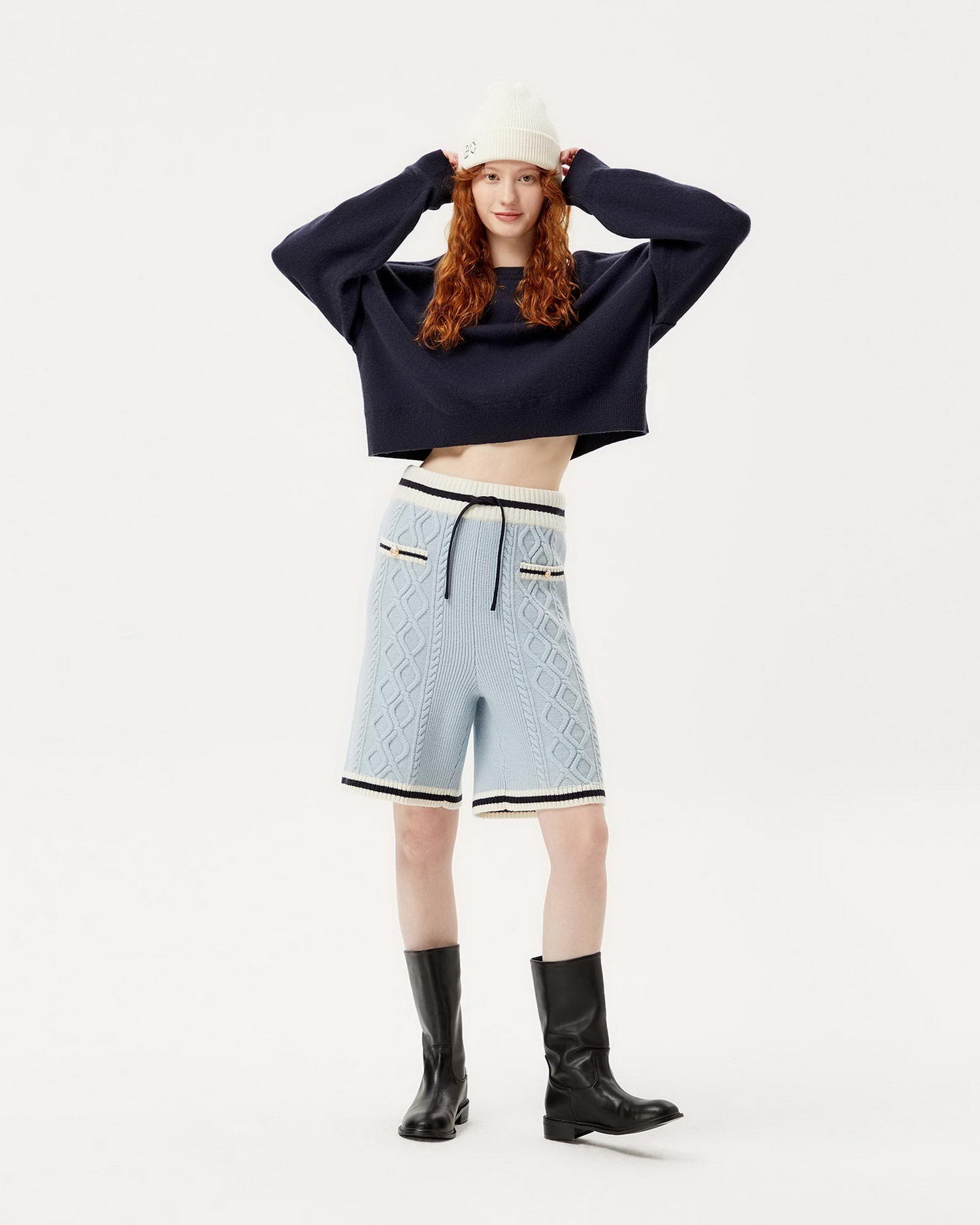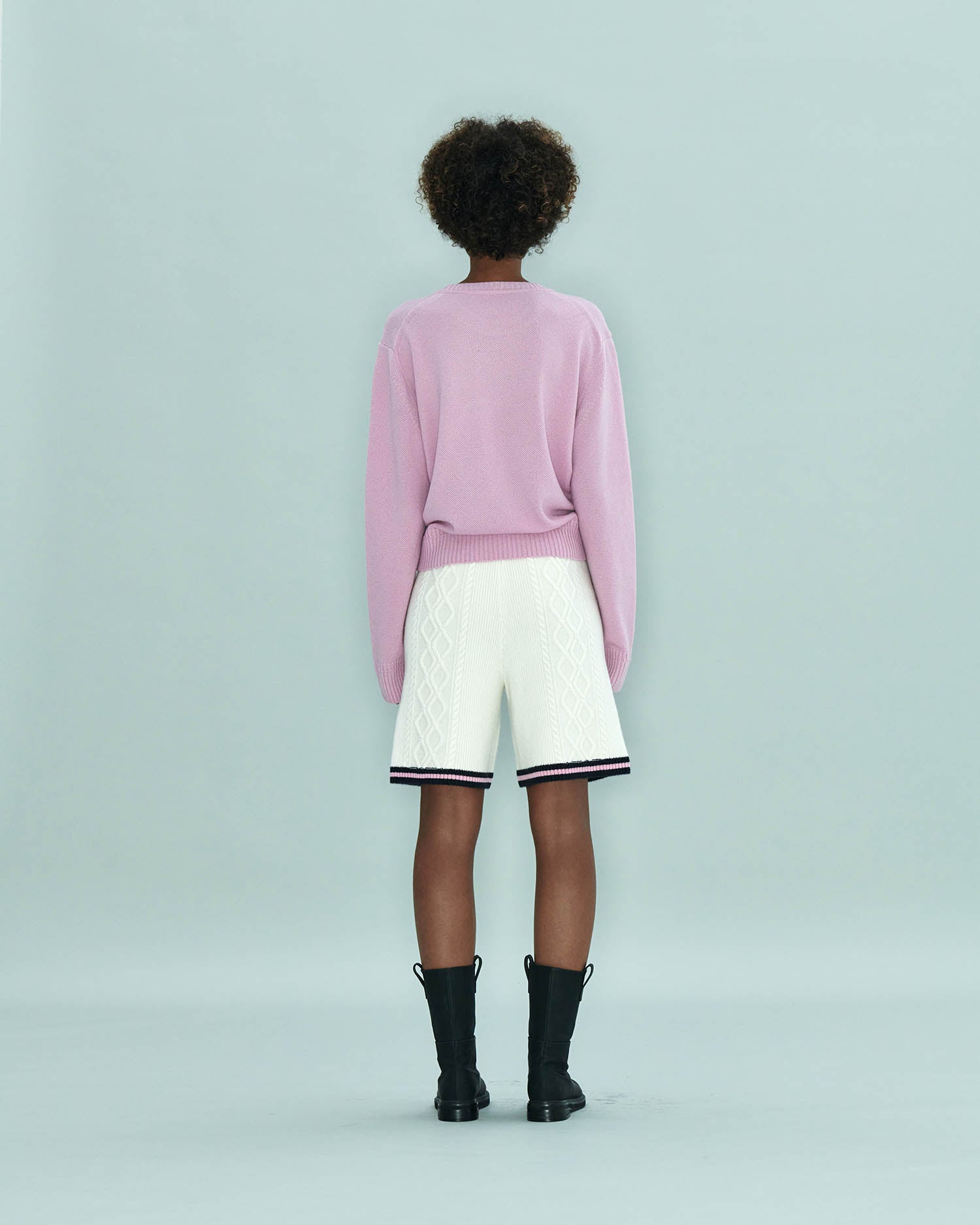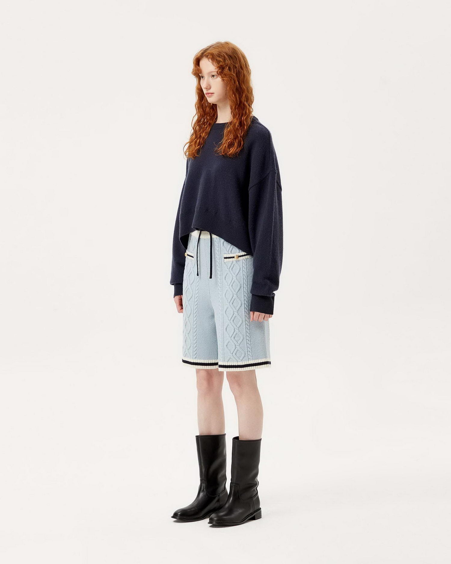 Timeless cable knit shorts on our favorite colors. Perfect for classic yet sleeck, chic styling. An elasticated high waist with drawstring ensures comfort and a flattering cut. This style is knitted from Mongolian sustainable cashmere, giving it a super-soft and comfortable hand feel.