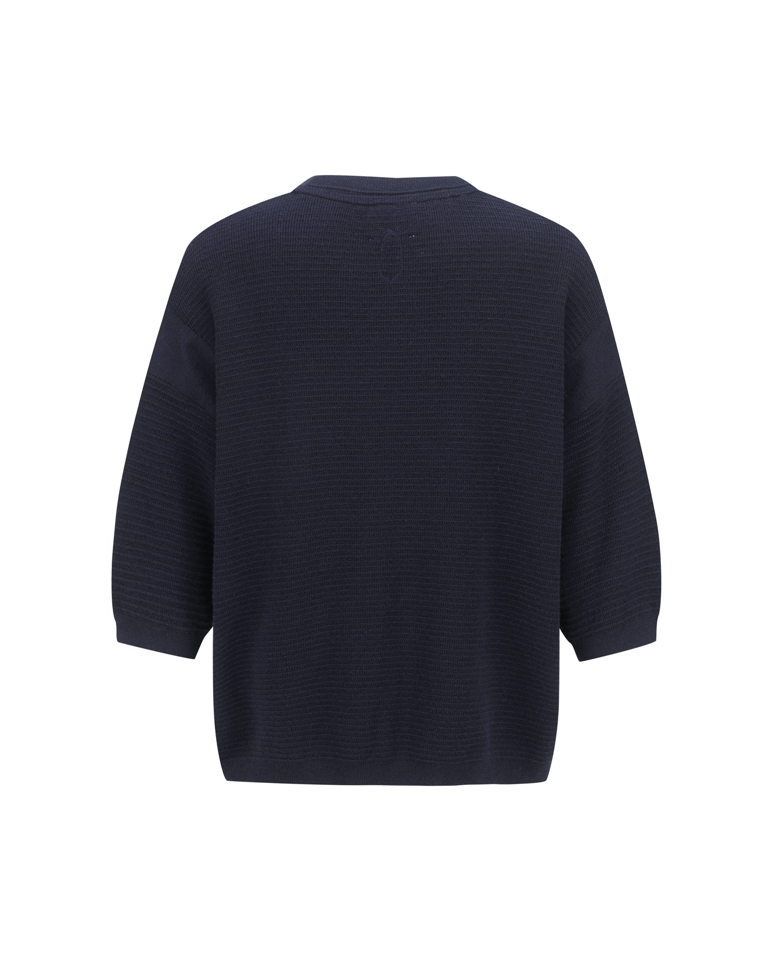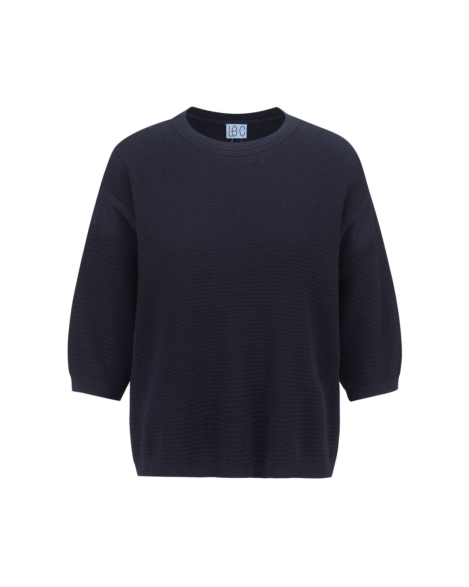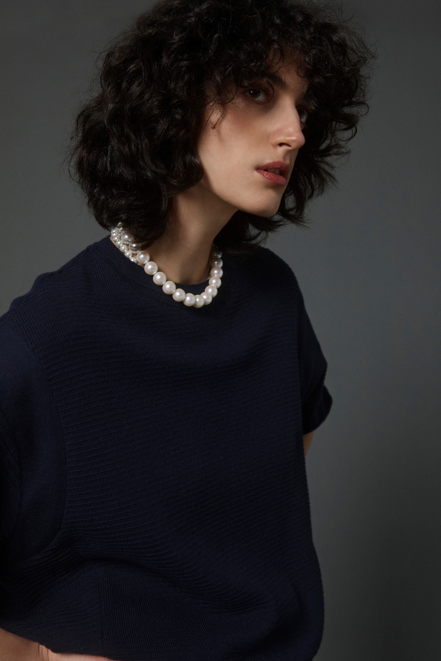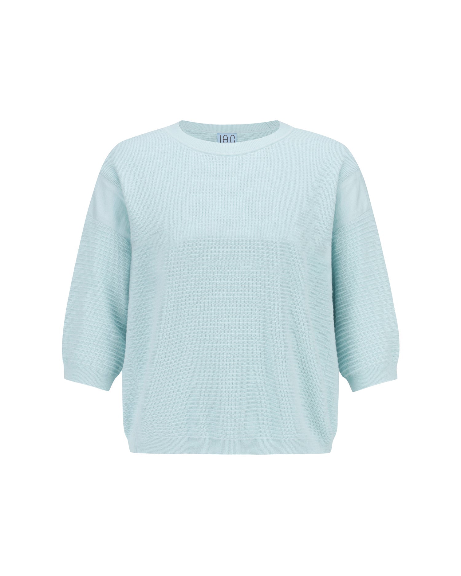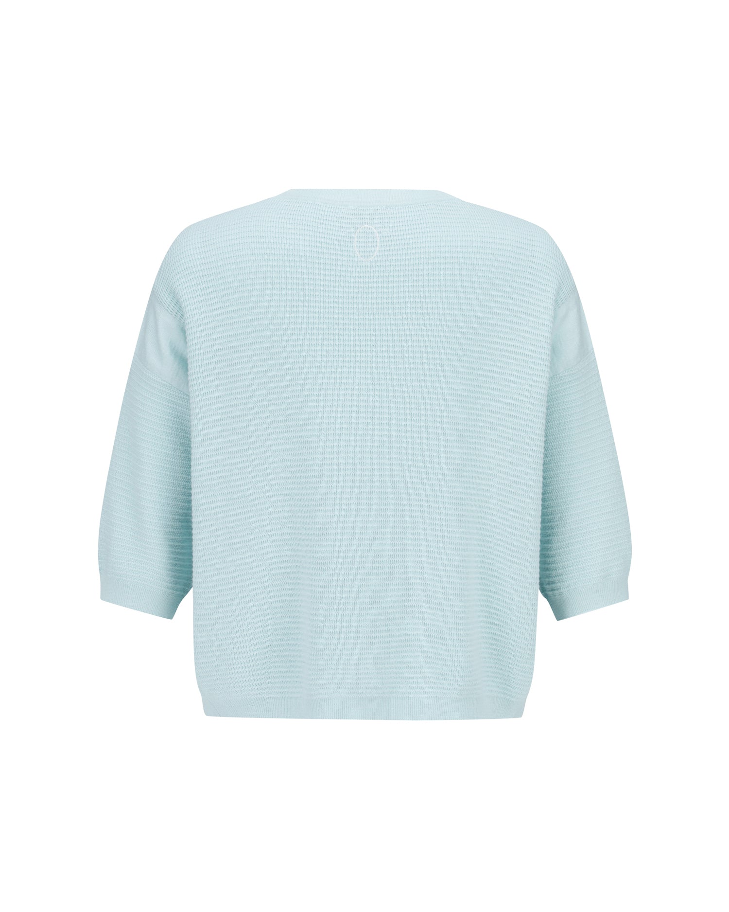 This crewneck top is knitted in a lightweight yet textured finish. It features a semi-cropped length, elbow-length sleeves and a boxy silhouette for a relaxed look. It is made from a blend of organic cotton and cashmere, giving it a soft and airy feel.