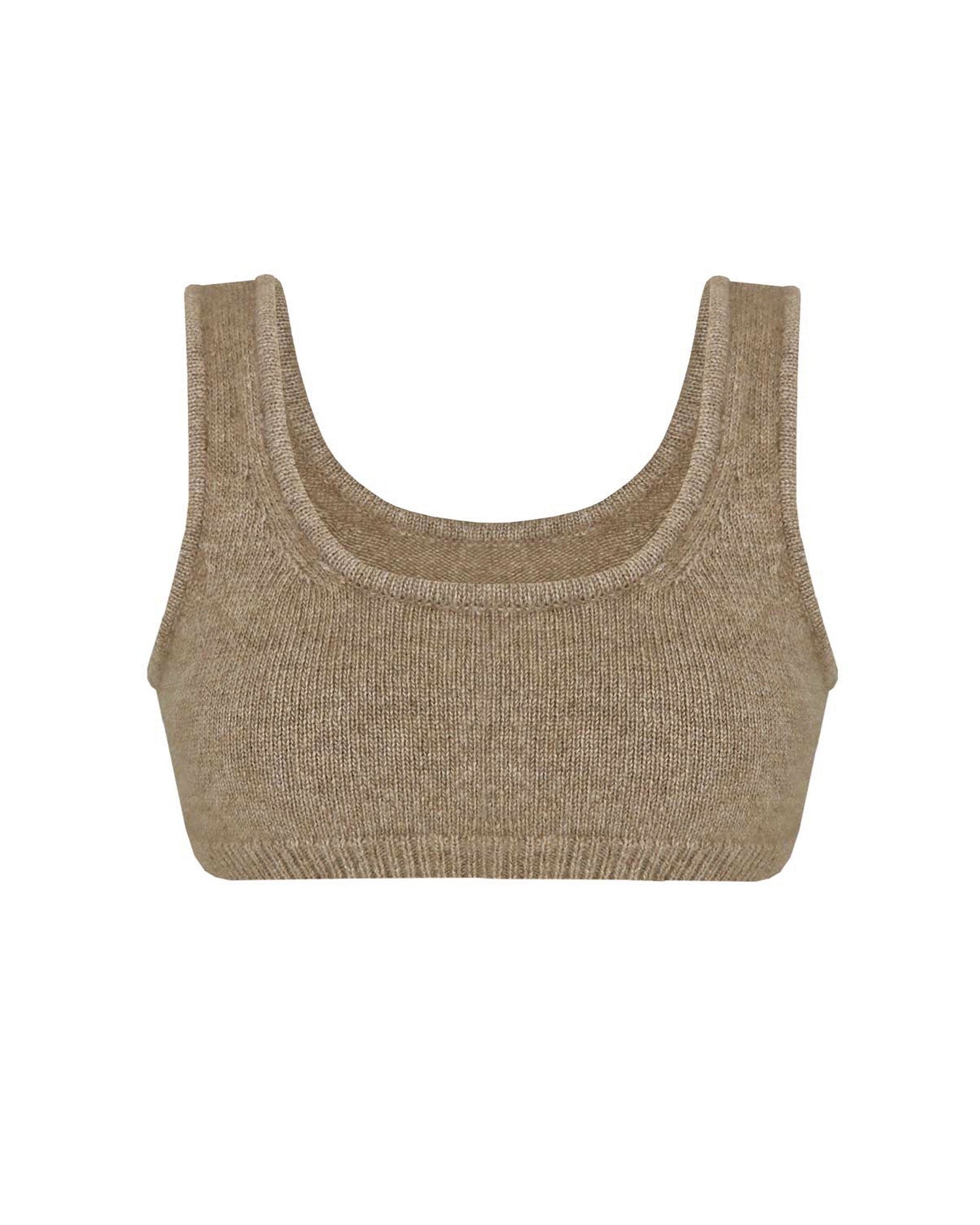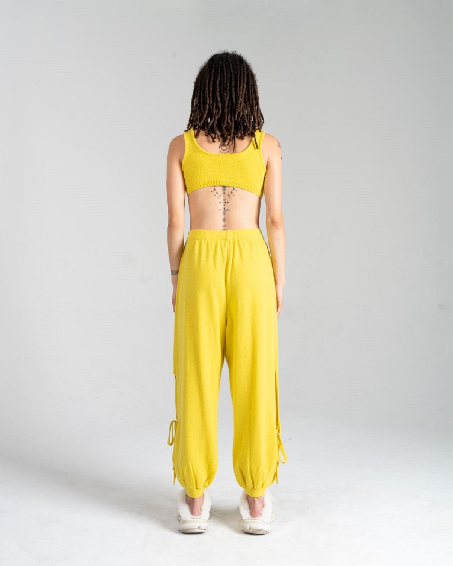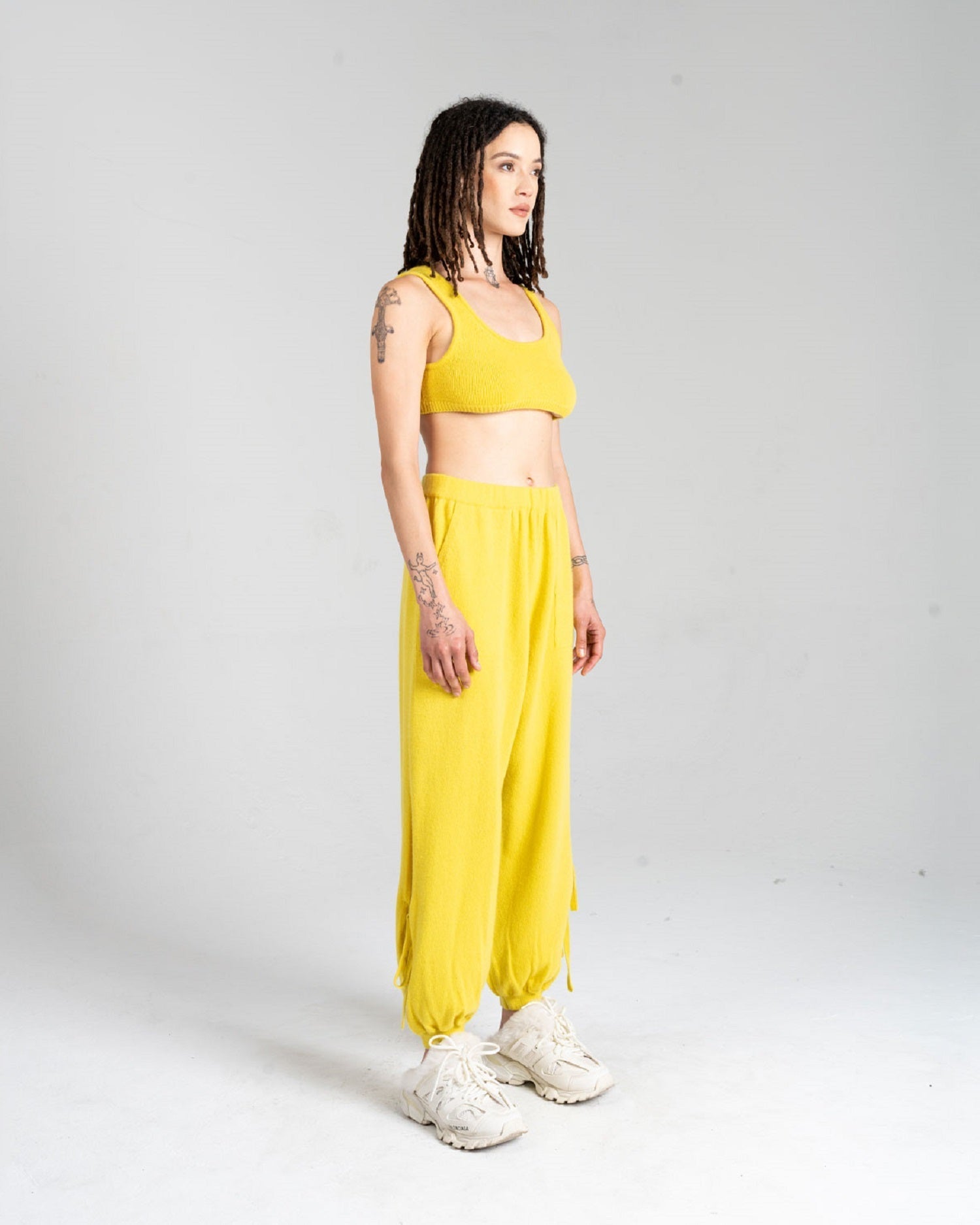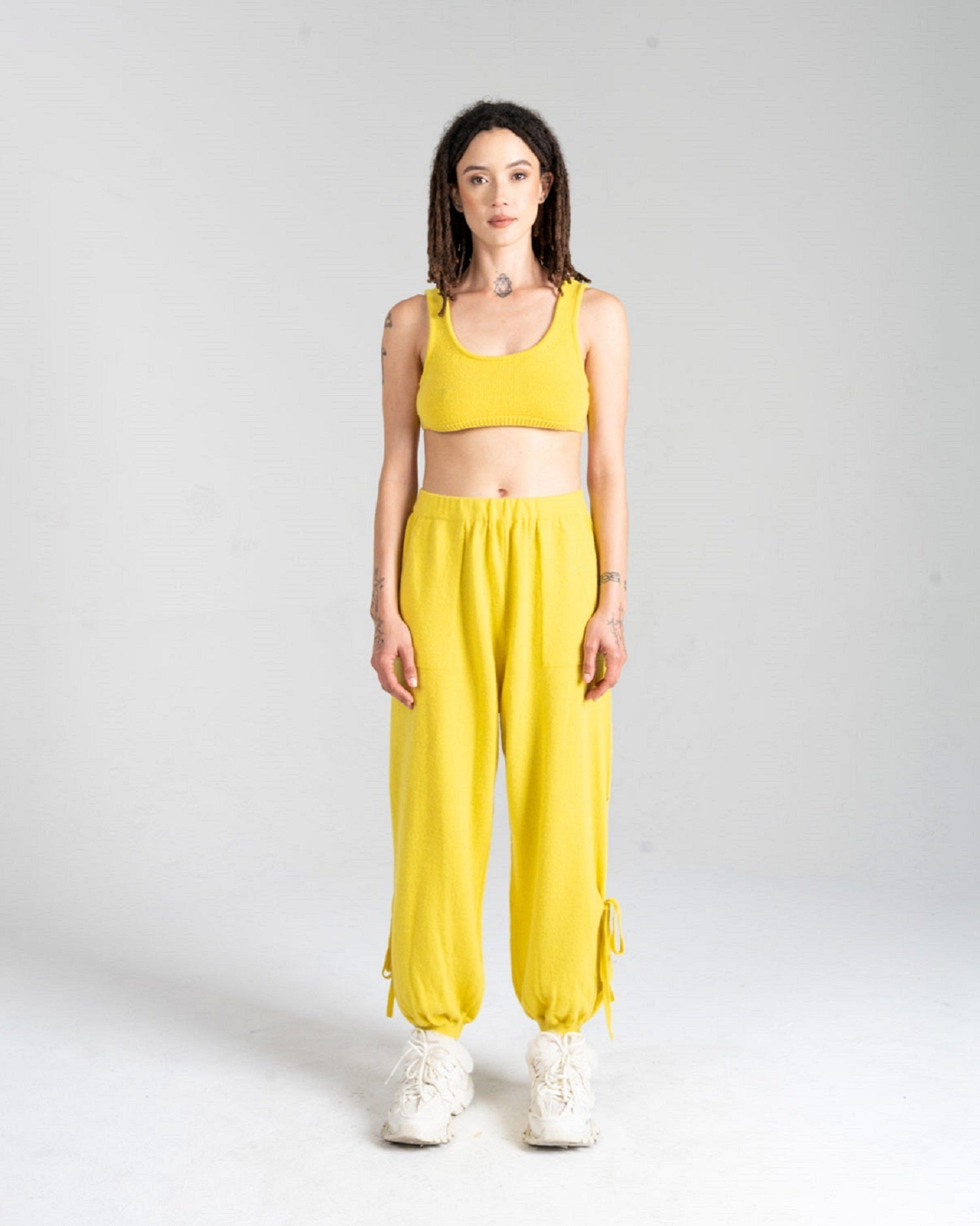 100% cashmere bralette for all-day comfort. It can also be worn as a knitted top, layered over sheer tops or t-shirts. Make it a match with Tie Cardigan & Tie Jogger.