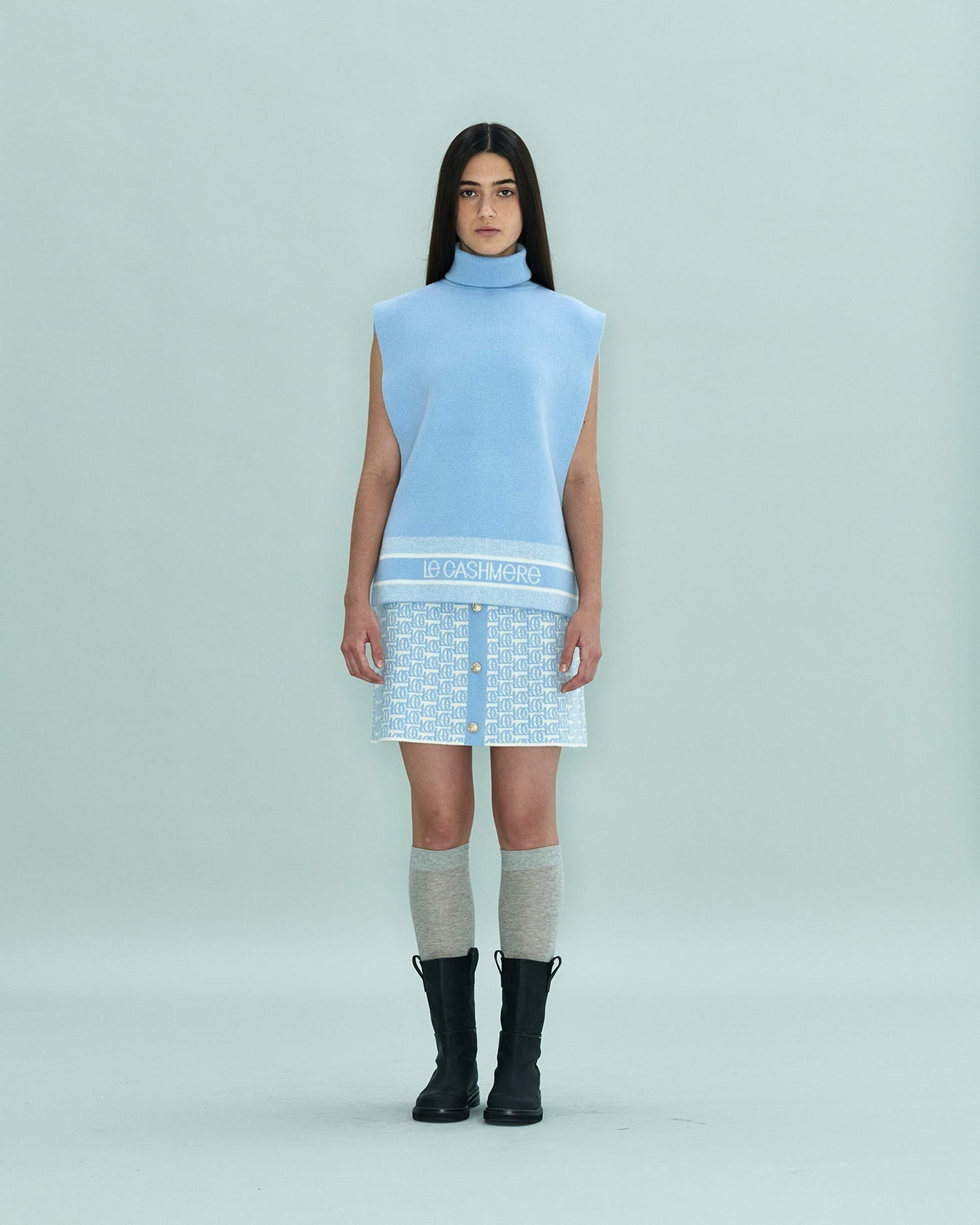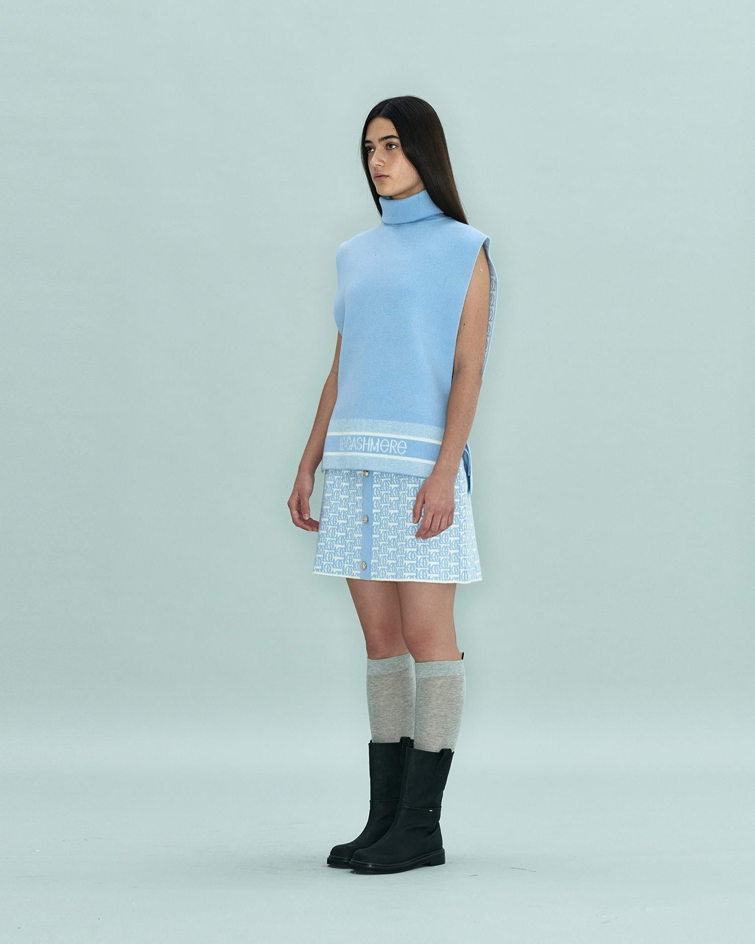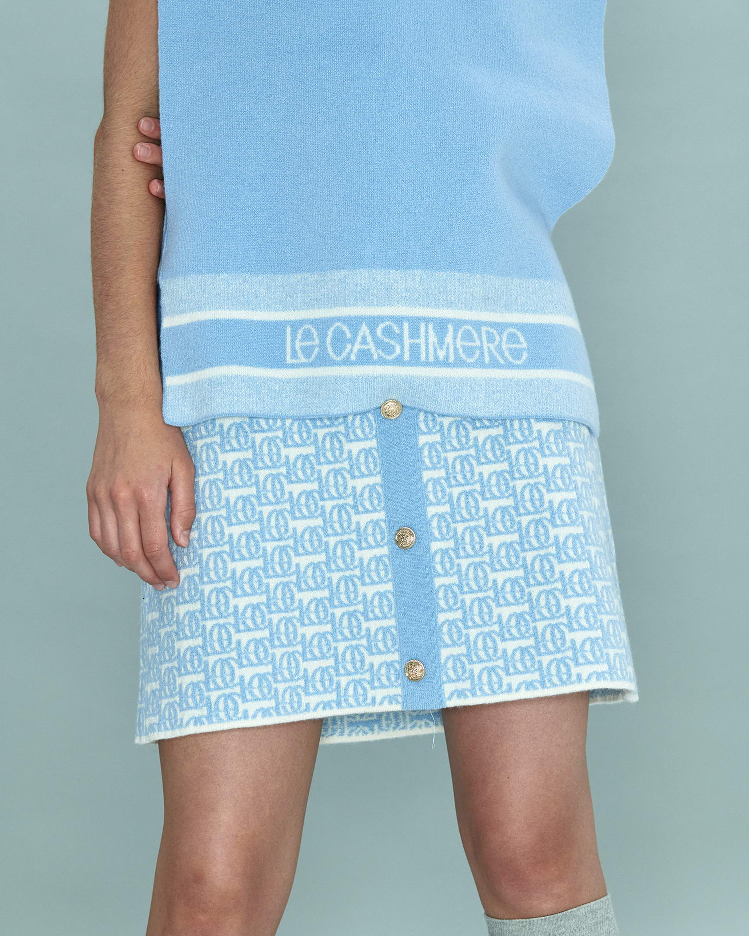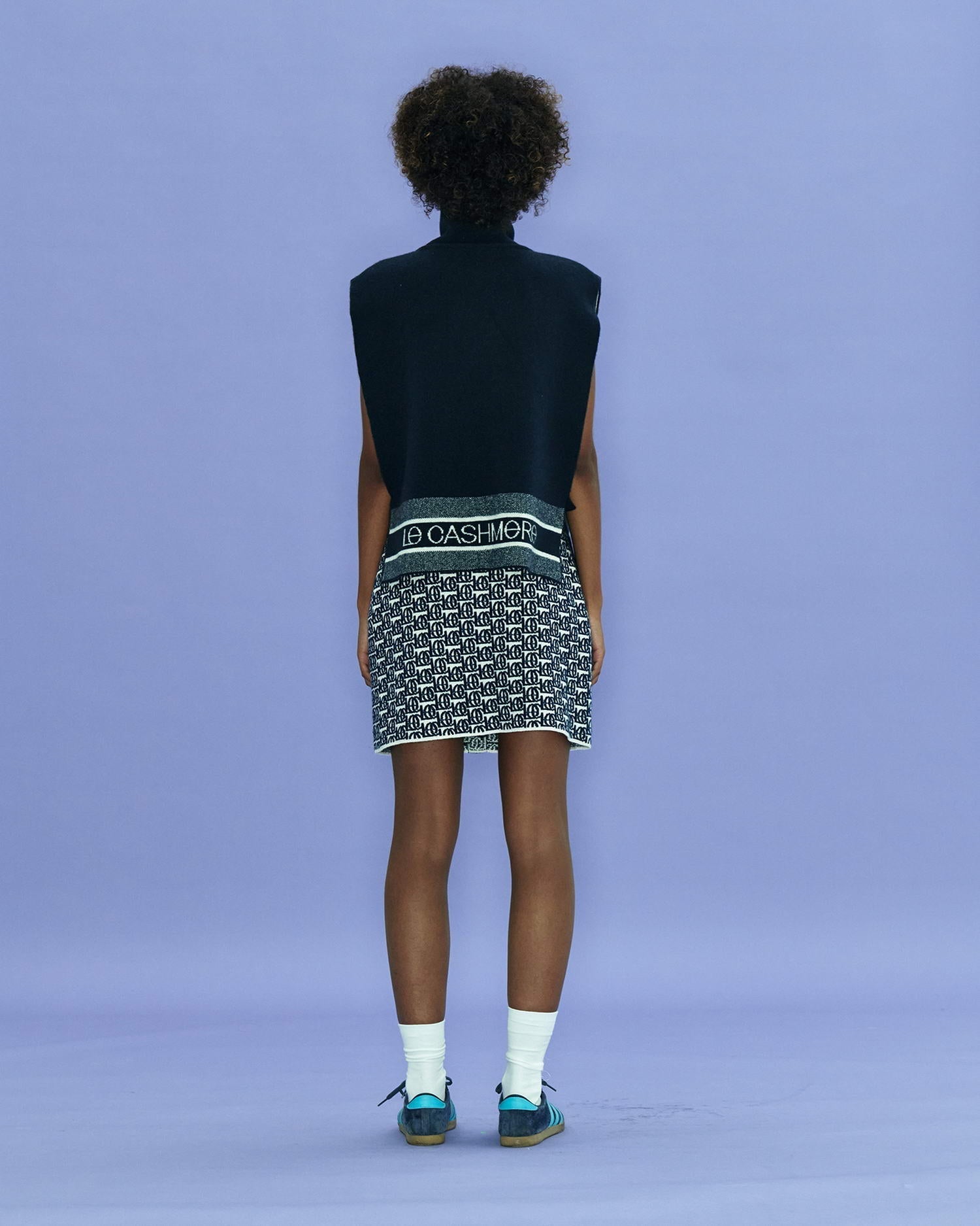 Luxurious mini skirt, shaped for a slight A-line silhouette. Special logo-jacquard motif highlights the unique pattern of the skirt. Crafted from extremely soft and high-quality sustainable cashmere. Style it as a two-piece set with the coordinating vest or knitted scarf.