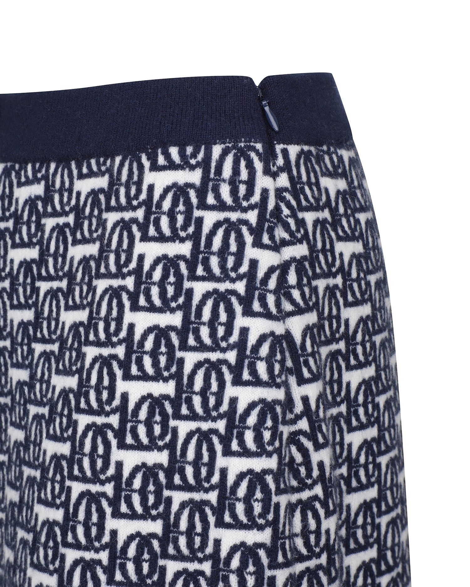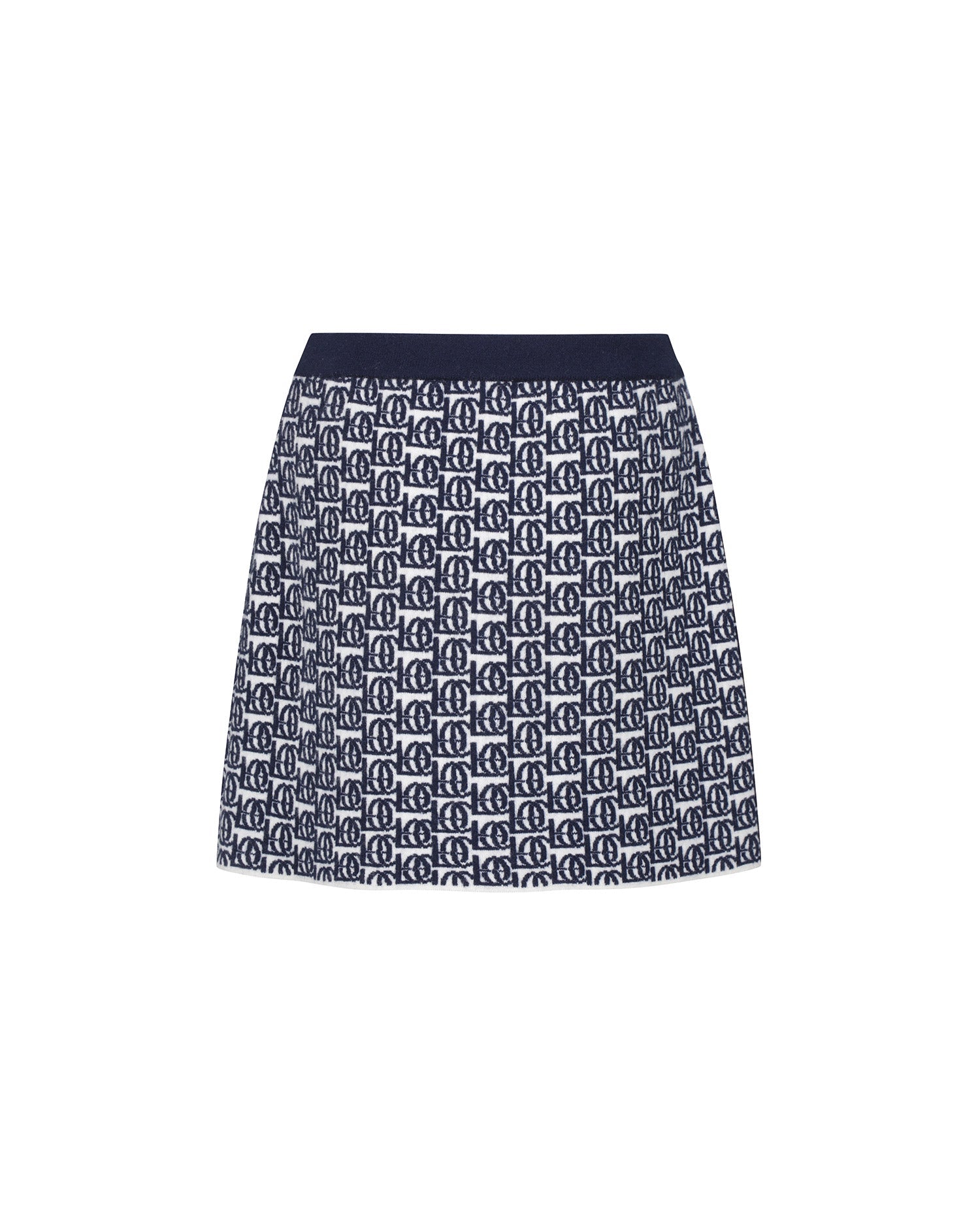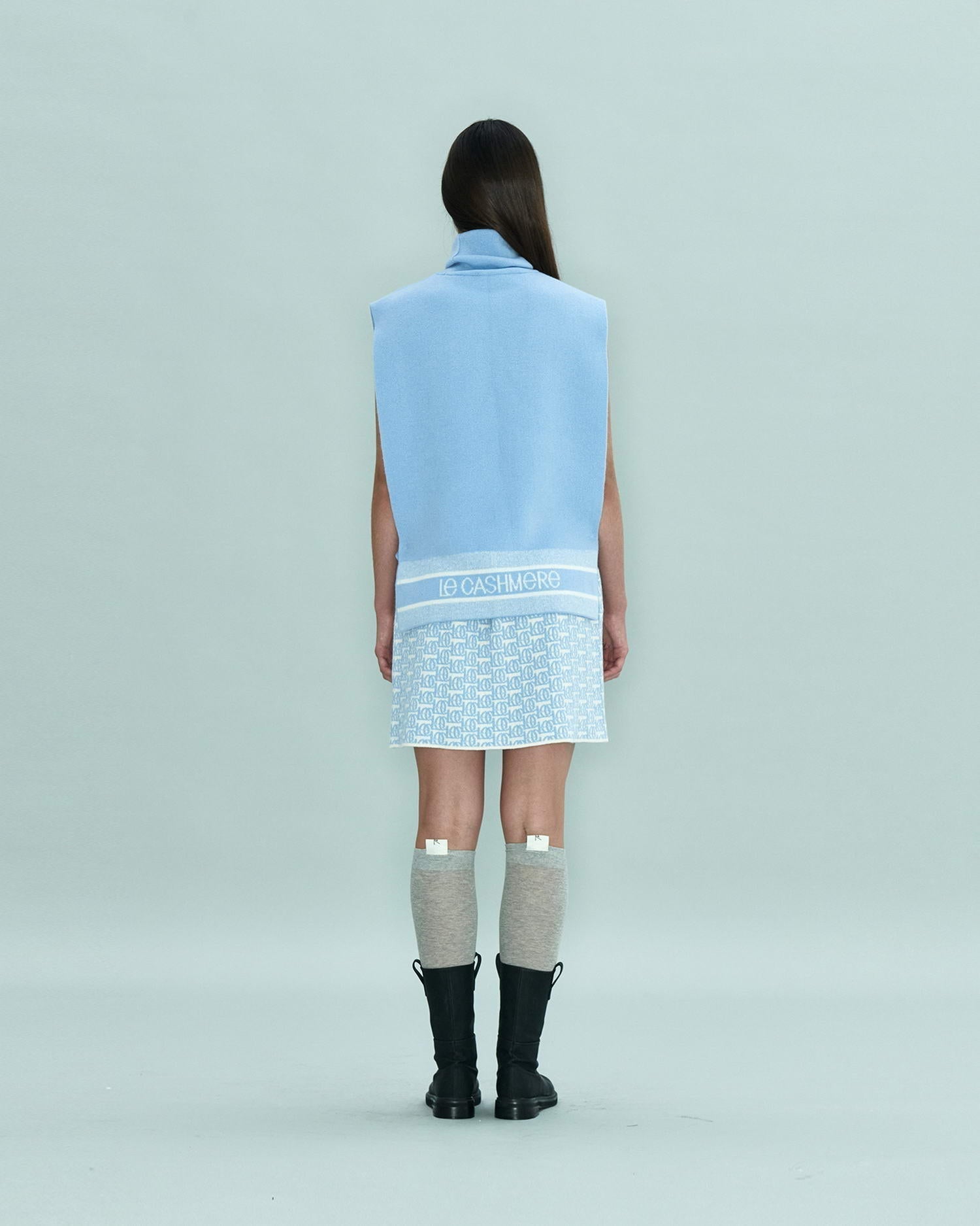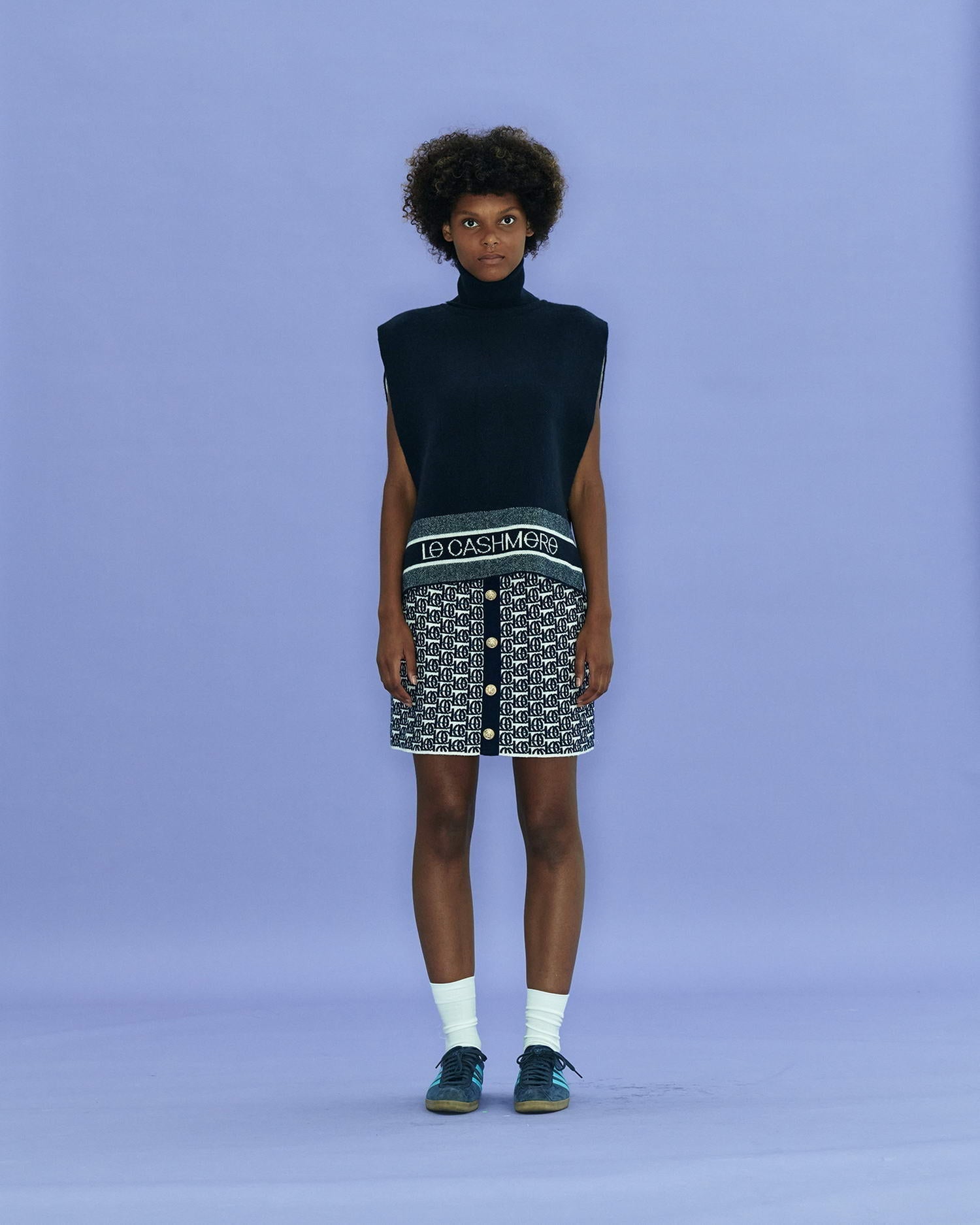 Luxurious mini skirt, shaped for a slight A-line silhouette. Special logo-jacquard motif highlights the unique pattern of the skirt. Crafted from extremely soft and high-quality sustainable cashmere. Style it as a two-piece set with the coordinating vest or knitted scarf.
