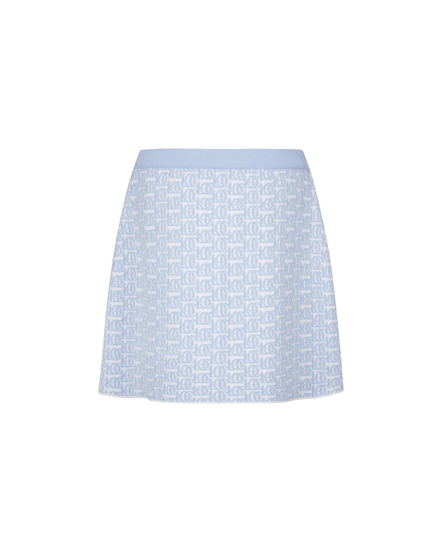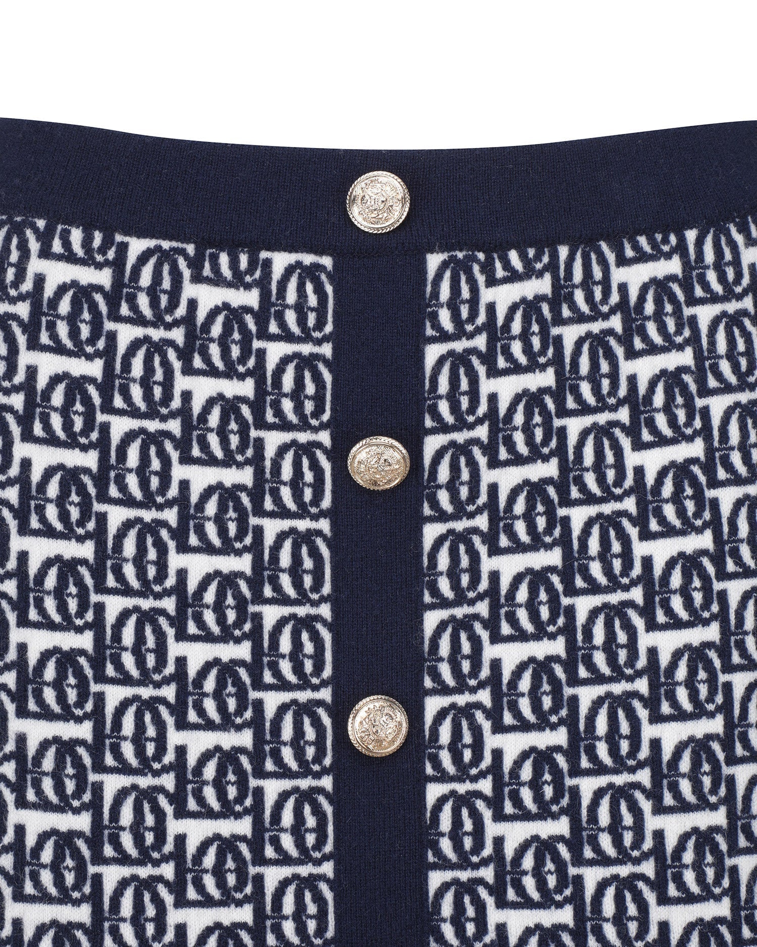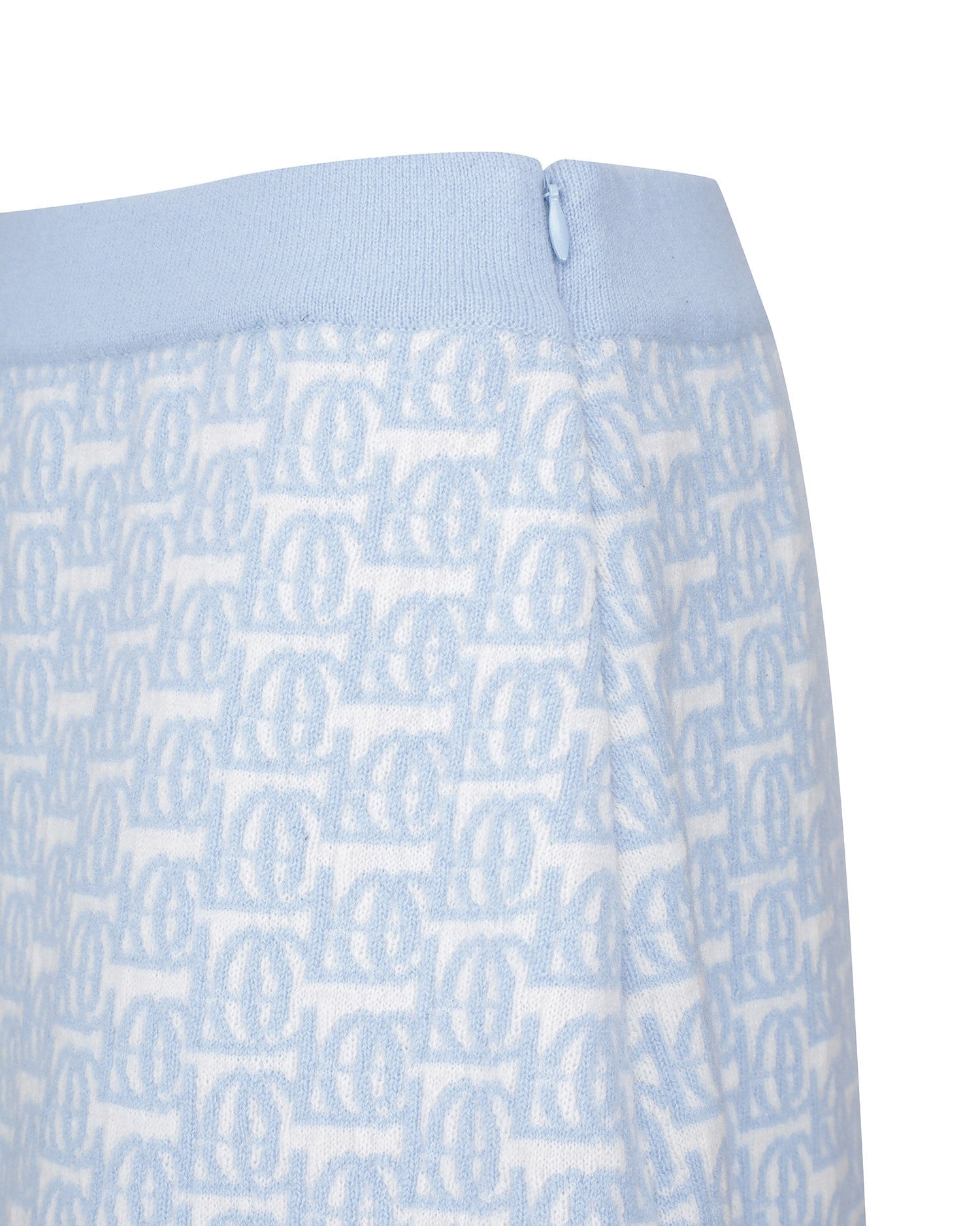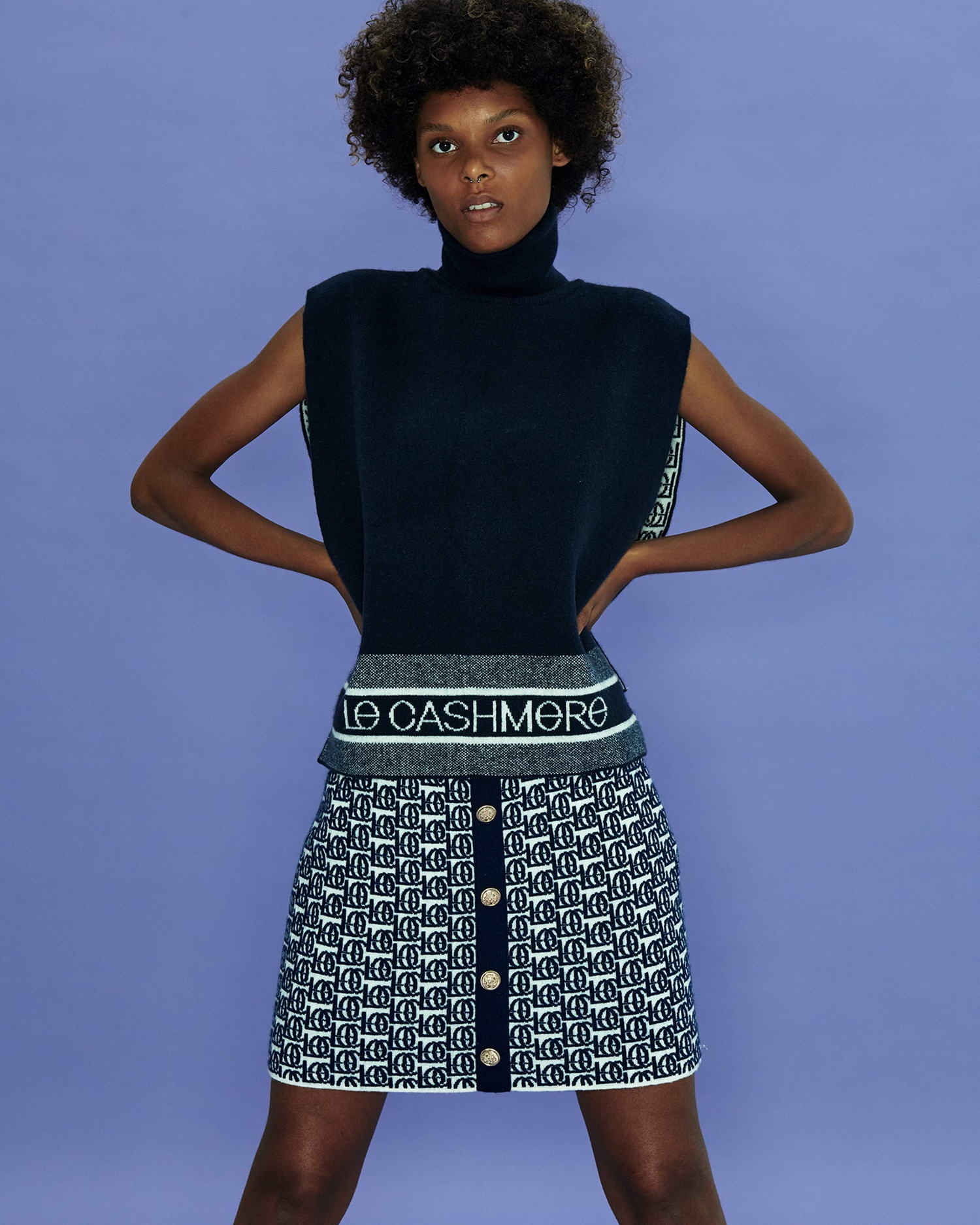 Luxurious mini skirt, shaped for a slight A-line silhouette. Special logo-jacquard motif highlights the unique pattern of the skirt. Crafted from extremely soft and high-quality sustainable cashmere. Style it as a two-piece set with the coordinating vest or knitted scarf.