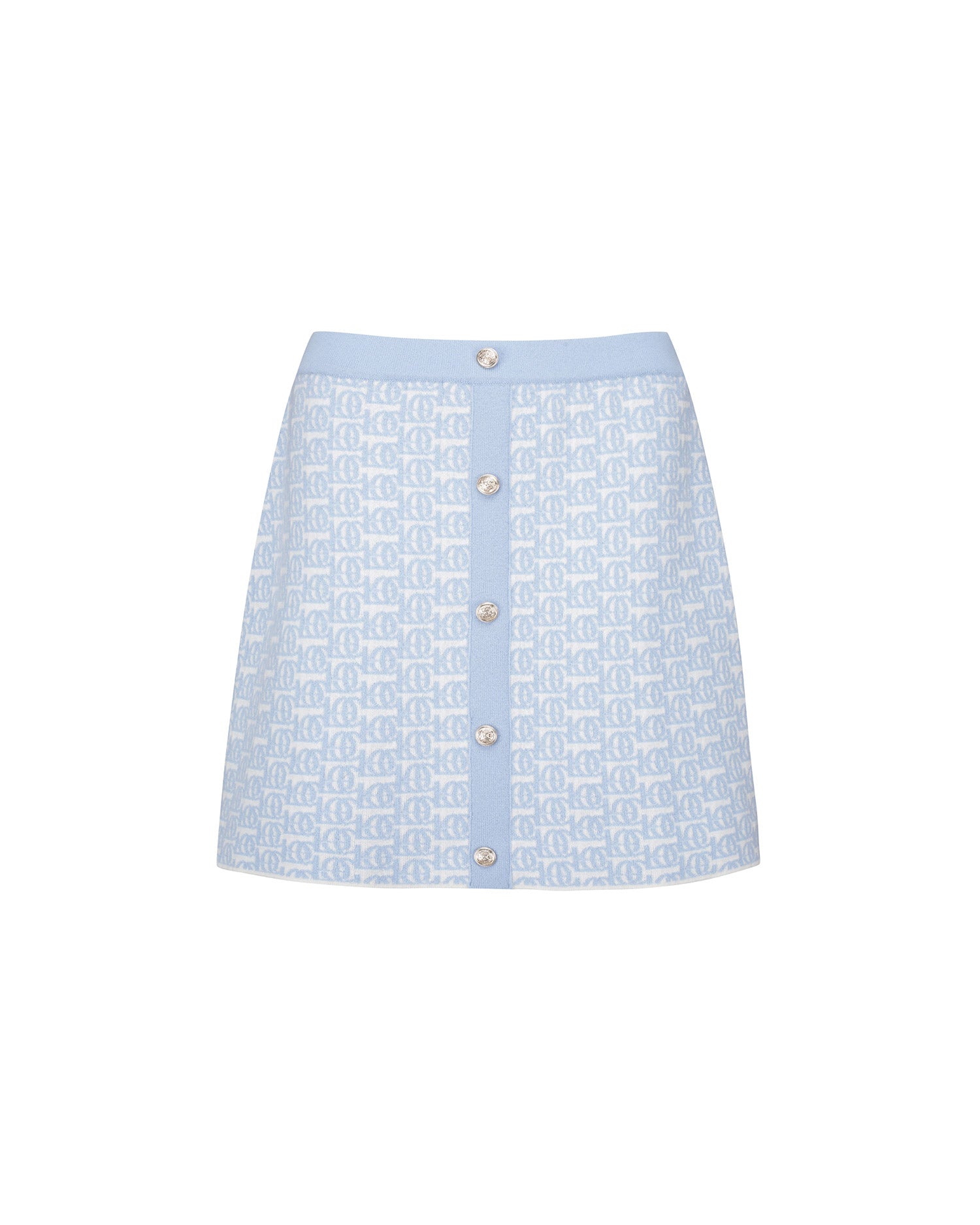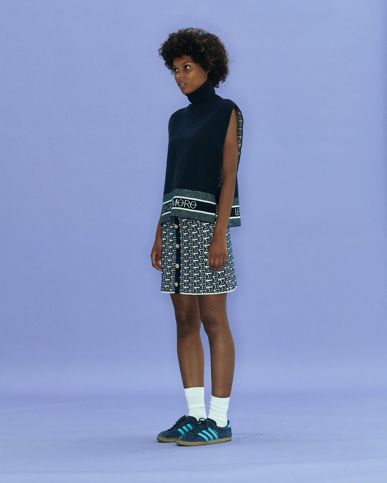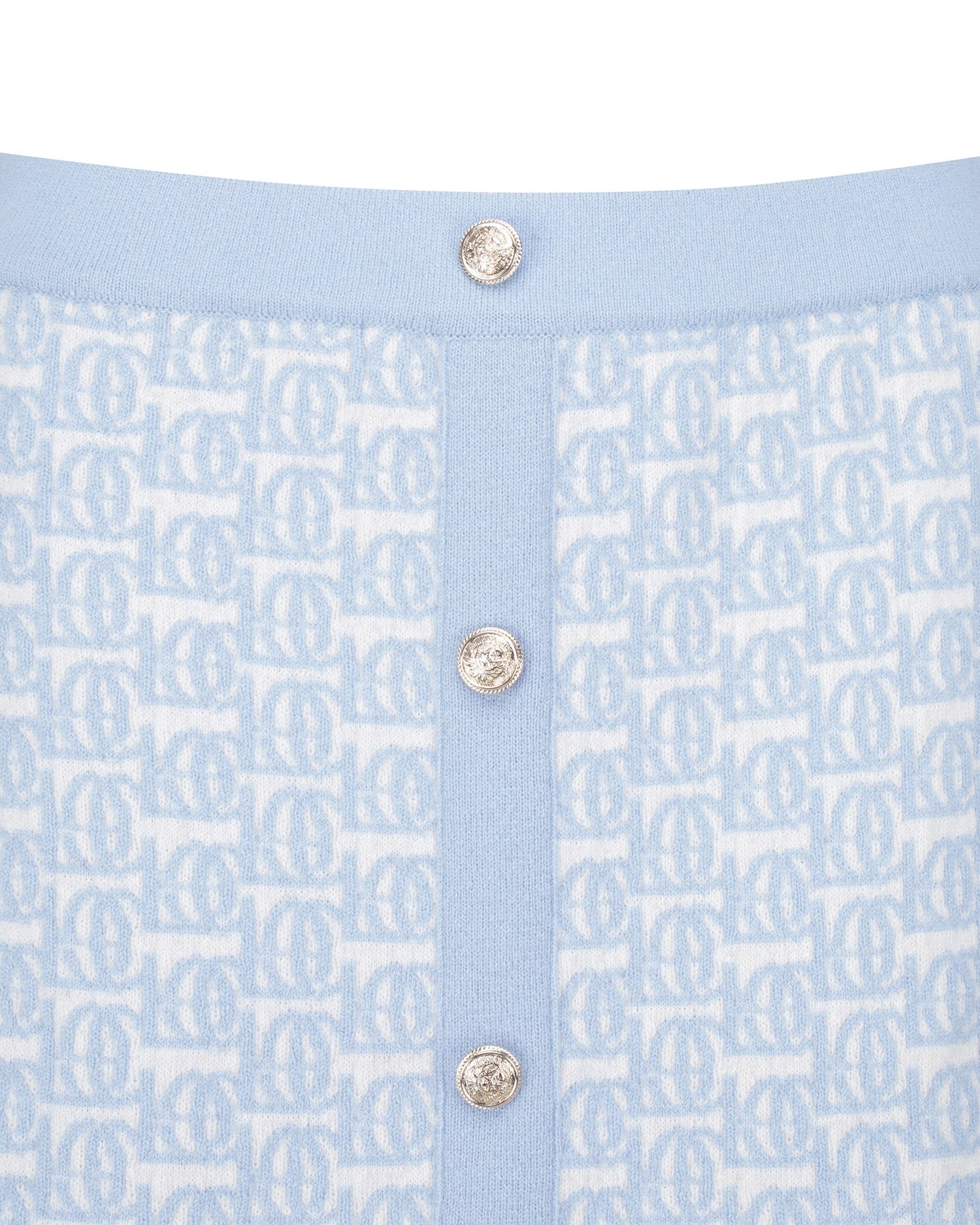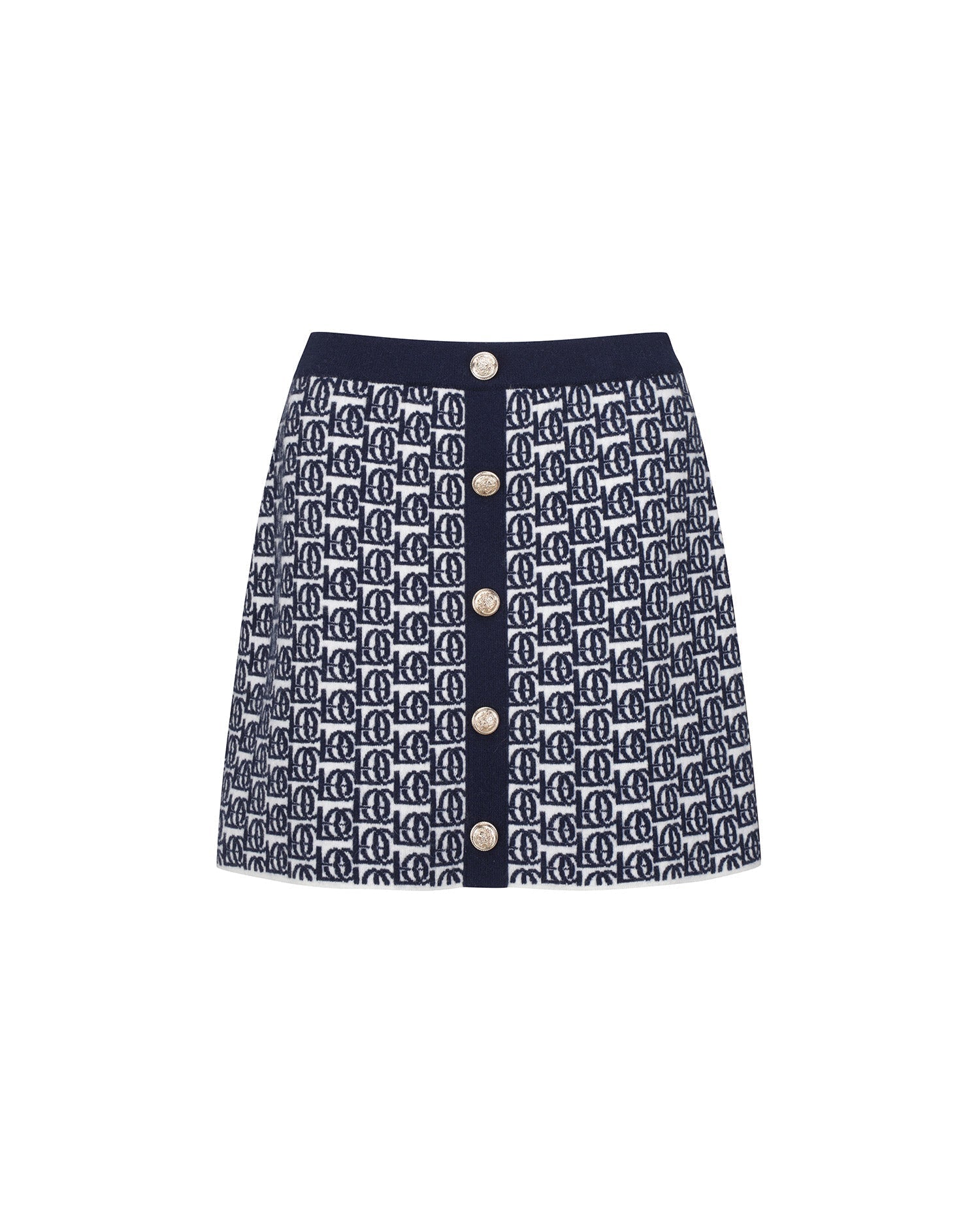 Luxurious mini skirt, shaped for a slight A-line silhouette. Special logo-jacquard motif highlights the unique pattern of the skirt. Crafted from extremely soft and high-quality sustainable cashmere. Style it as a two-piece set with the coordinating vest or knitted scarf.