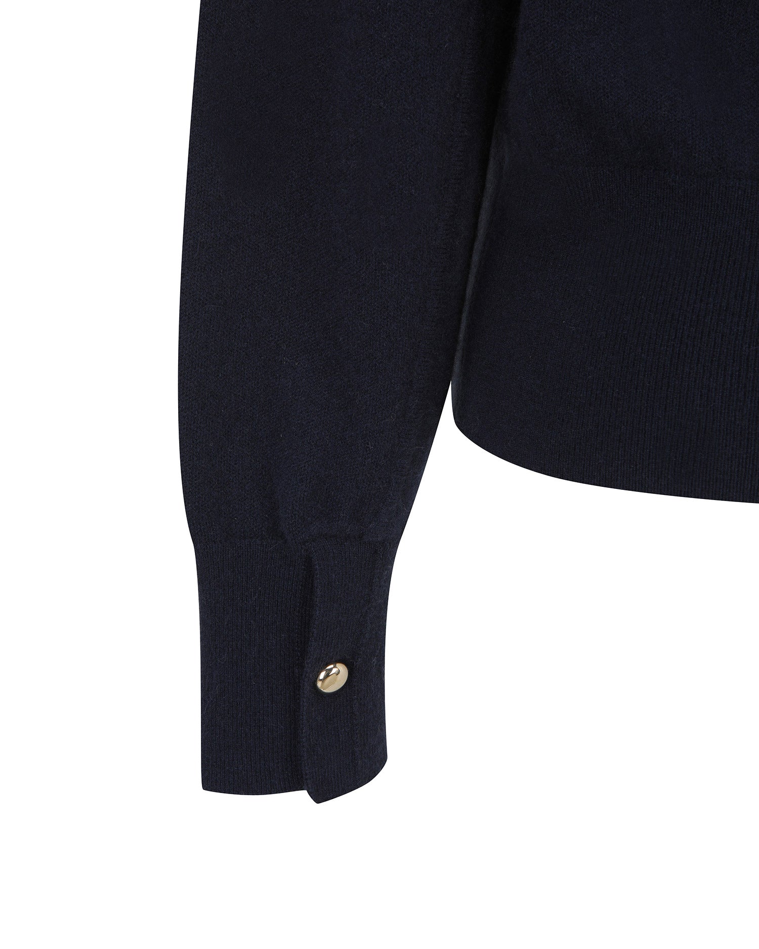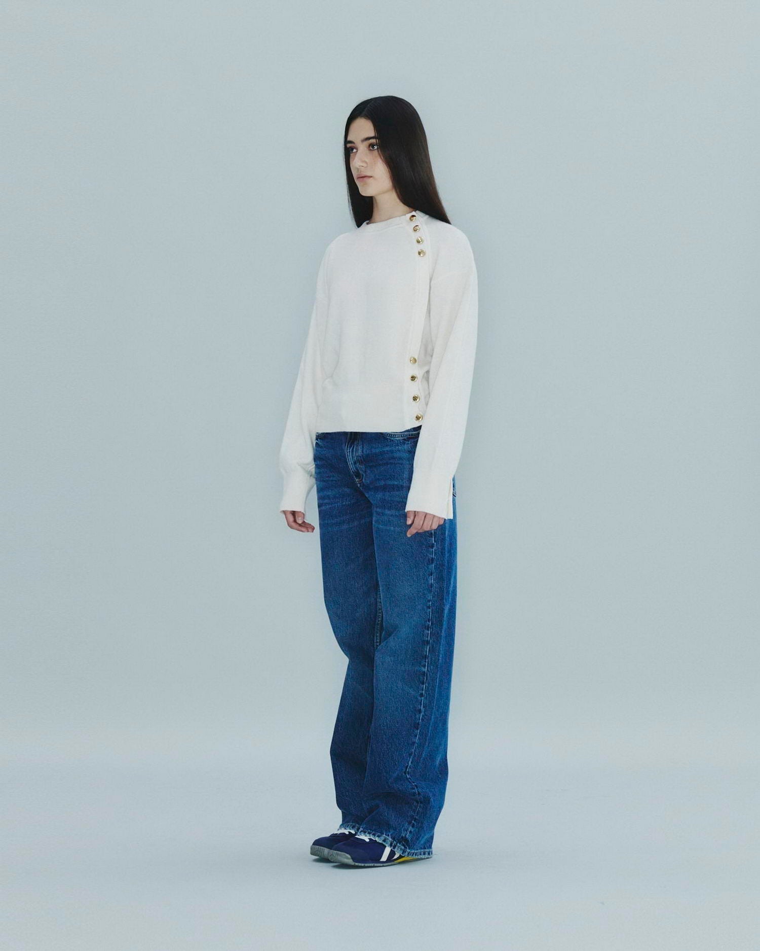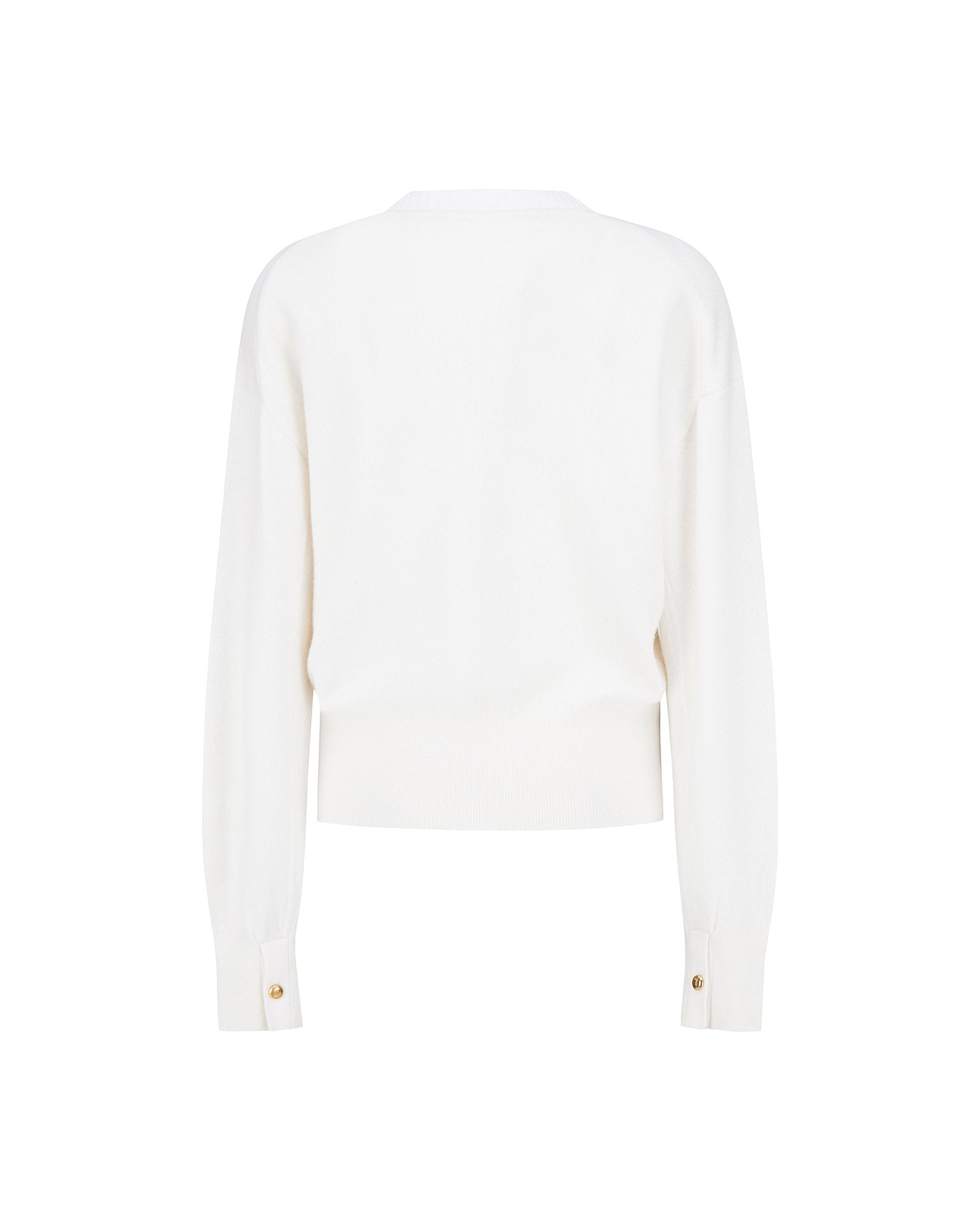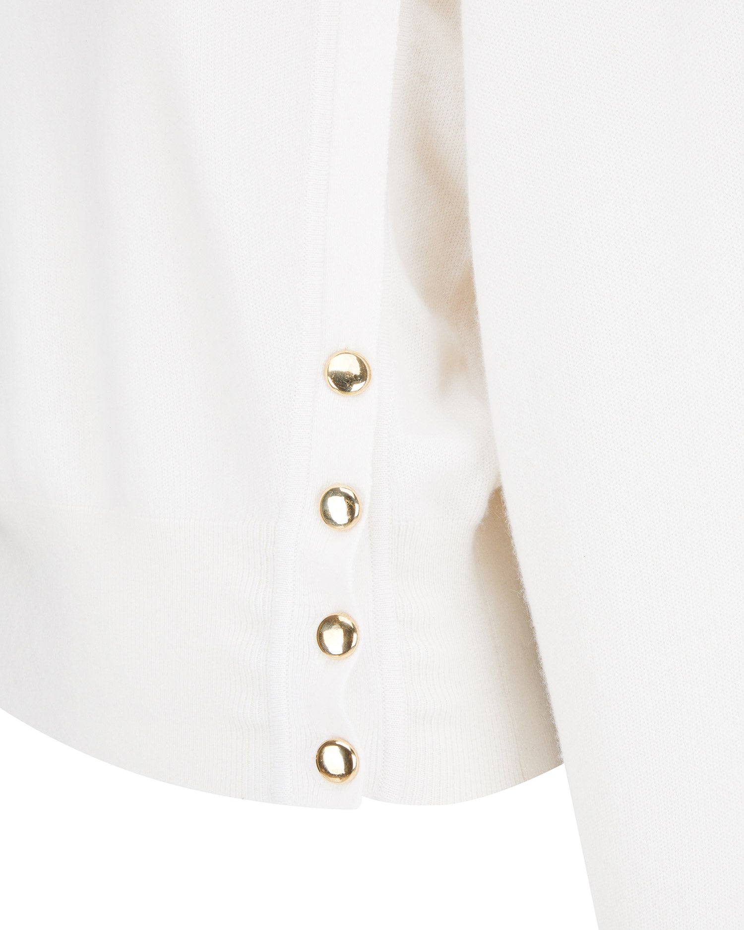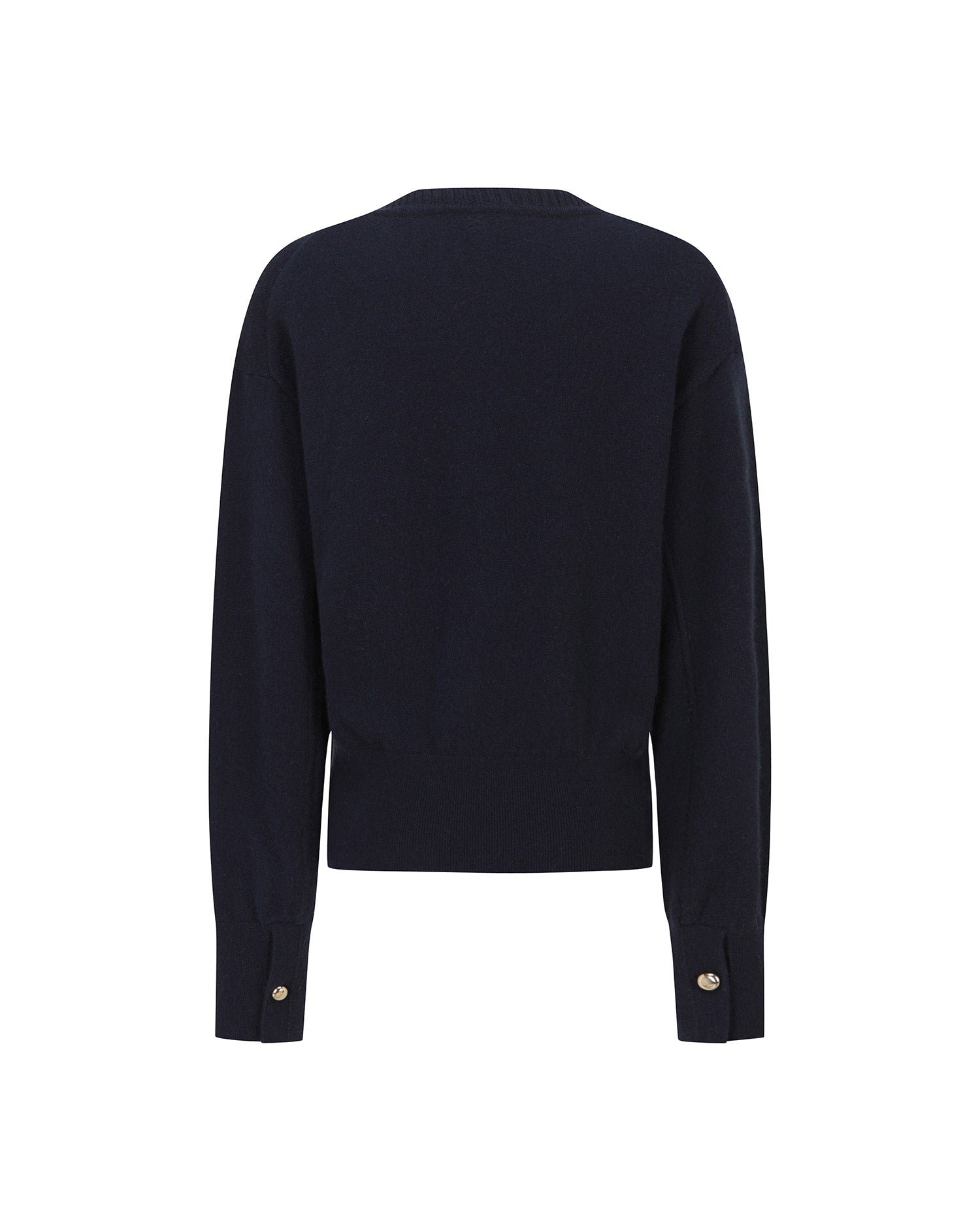 Quality sweater with structured silhouette and asymmetric gold buttons. It features drop shoulders, crewneck and ribbed trims which complete your elevated look. Crafted from Mongolian sustainable cashmere, giving it a luxurious and extremely soft texture.