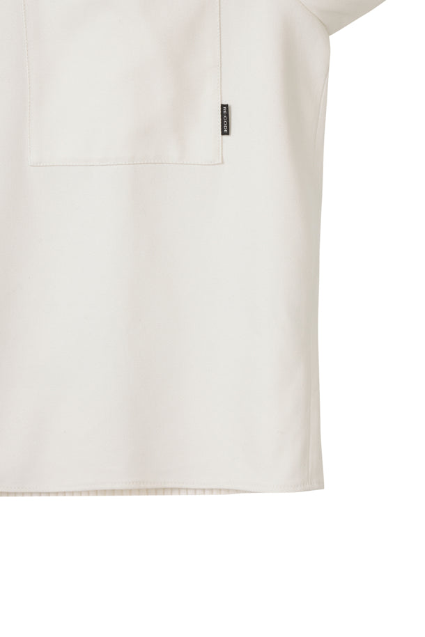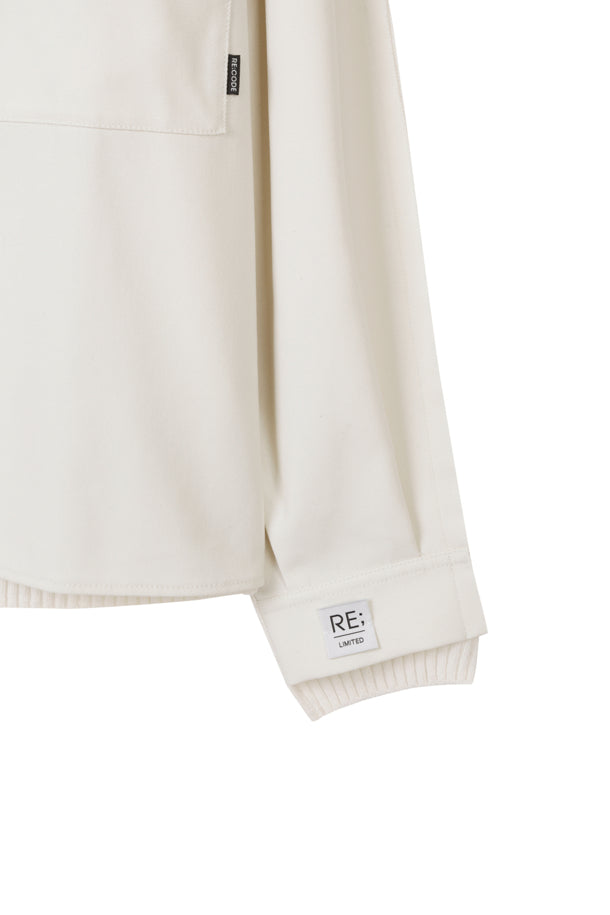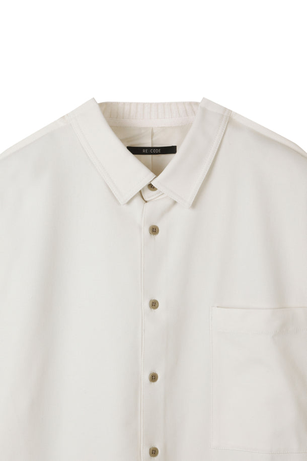 This is an oversized shirt made by disassembling leftover knitwear and combining it with shirt material.