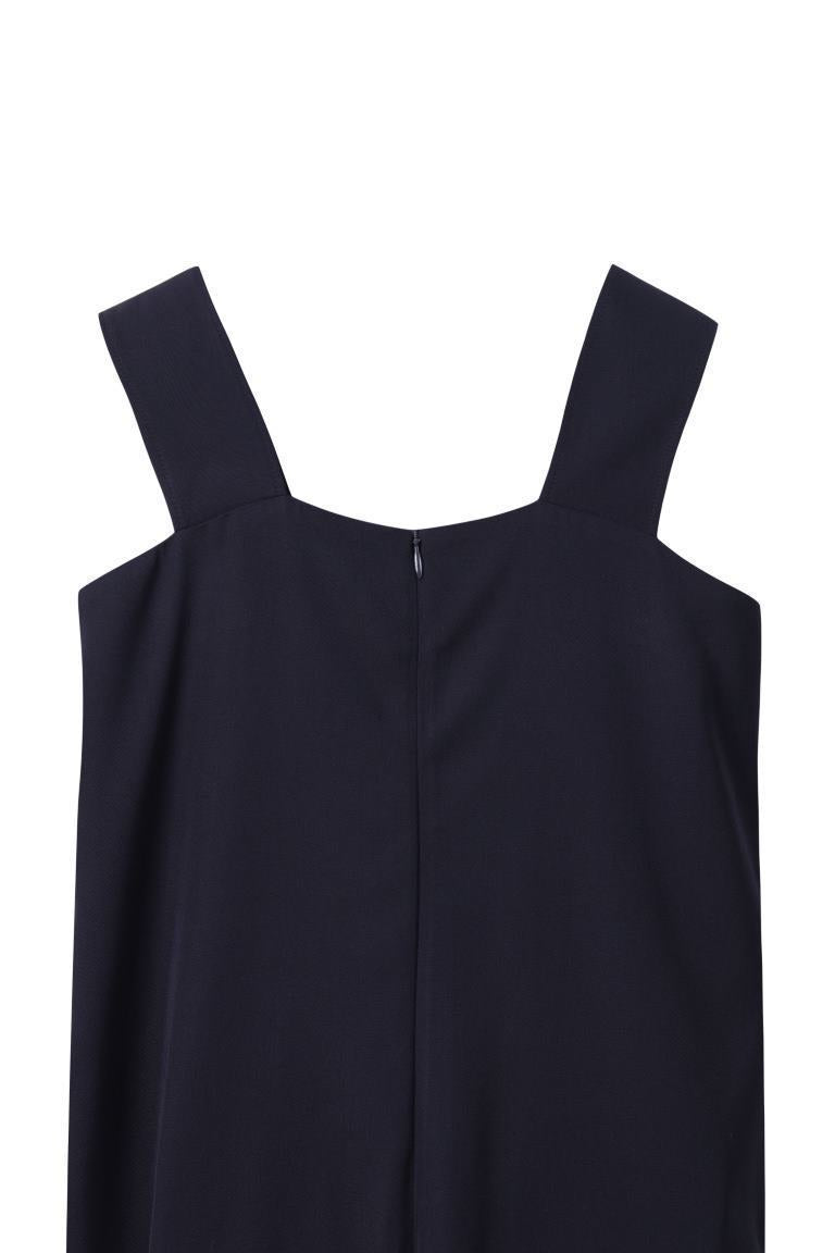 This dress started as an apron for layering. It is made using a patchwork detail of dismantled belt loops from suit pants and a 'clear twill' fabric mixed with viscose rayon. Two side pockets add practicality and a YKK mesh zipper.