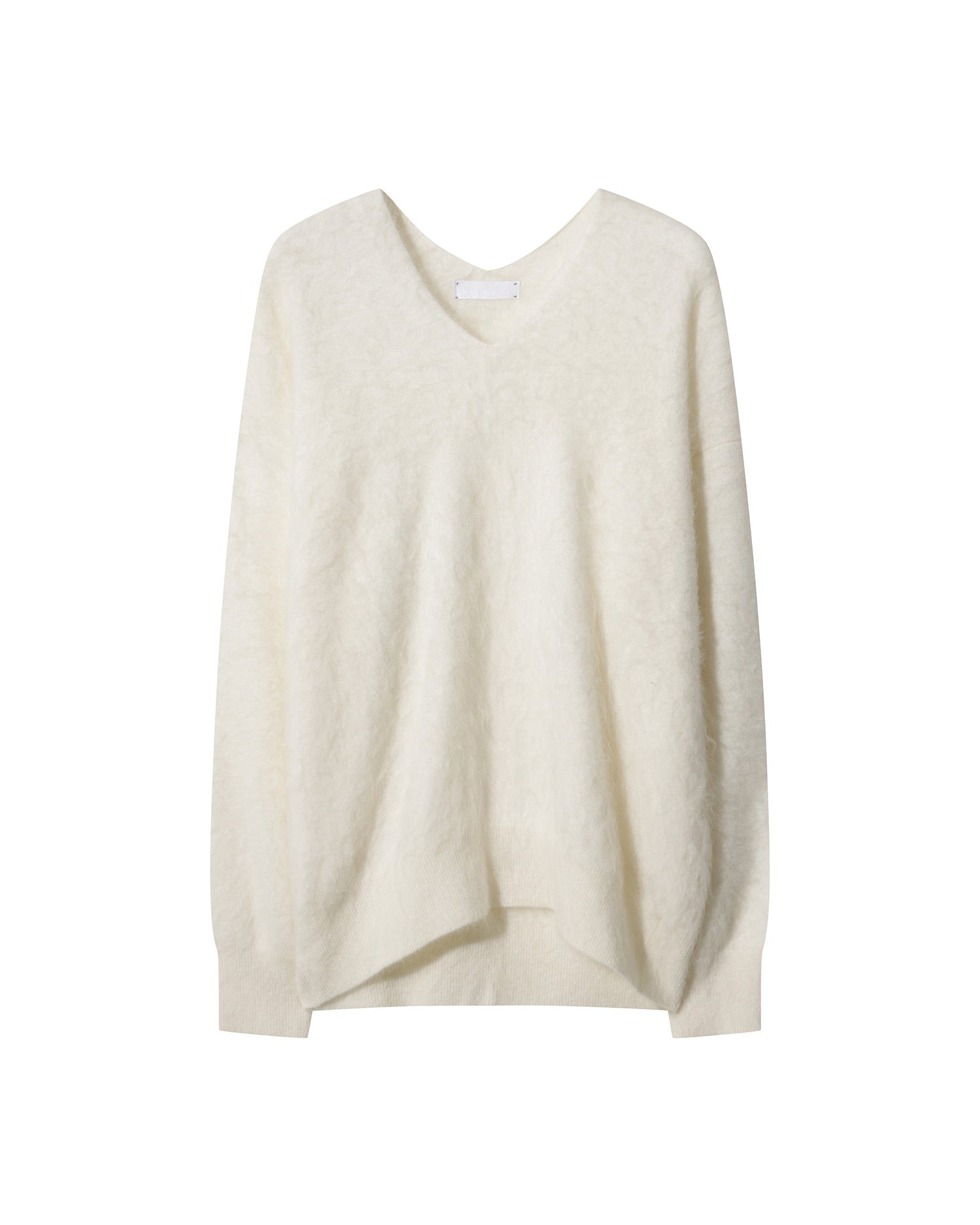 The relaxed silhouette and V-neckline harmoniously combine to create a delicate design with a sensual appeal.