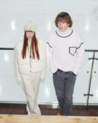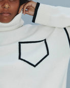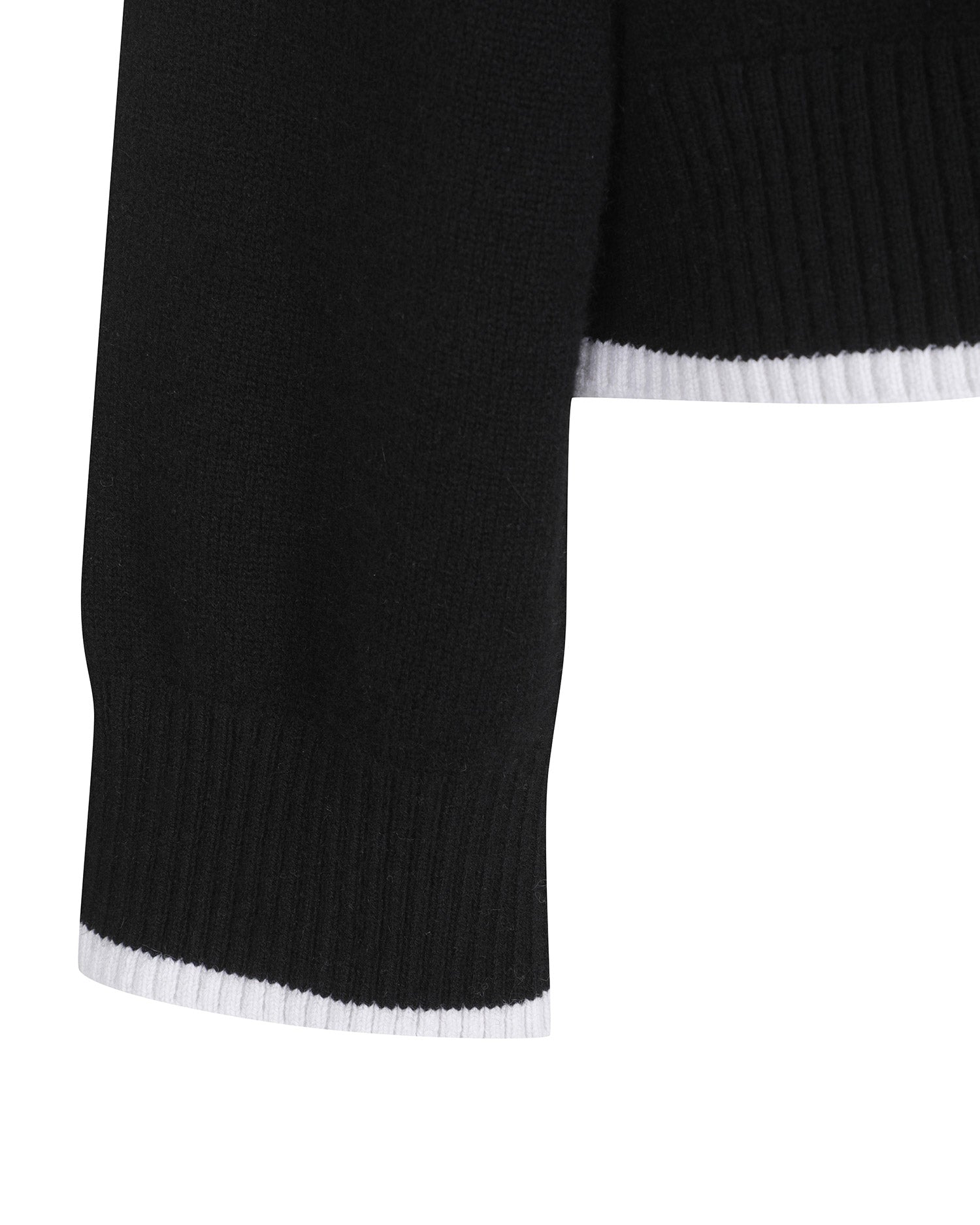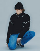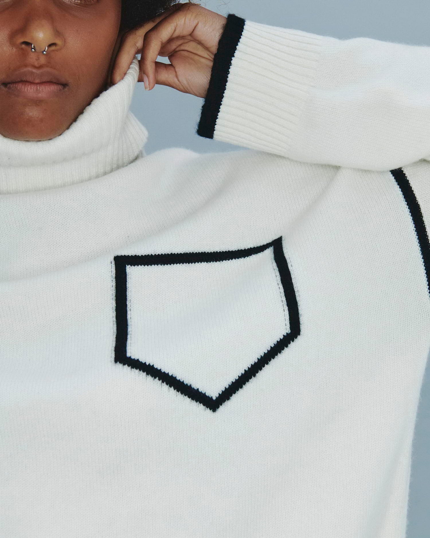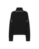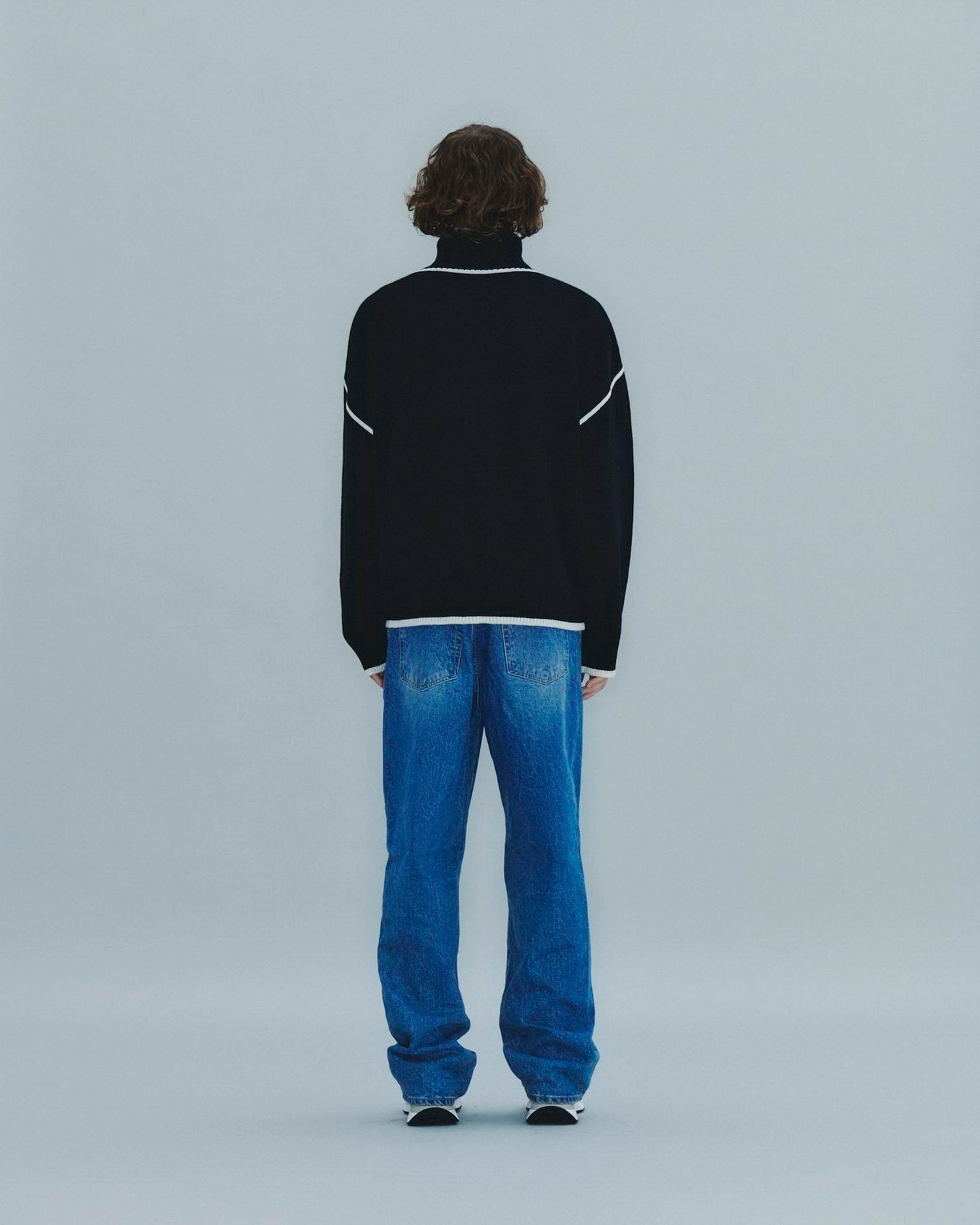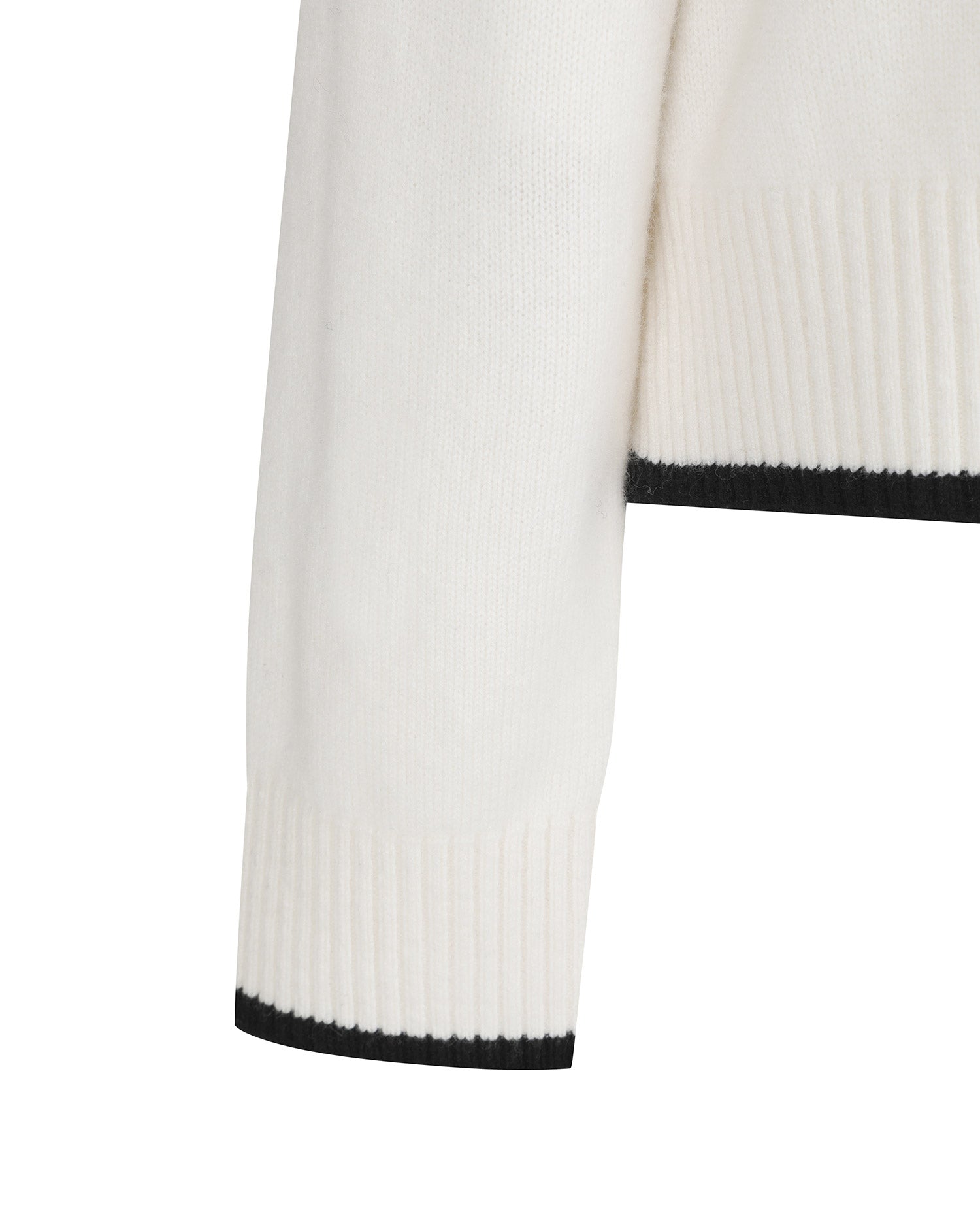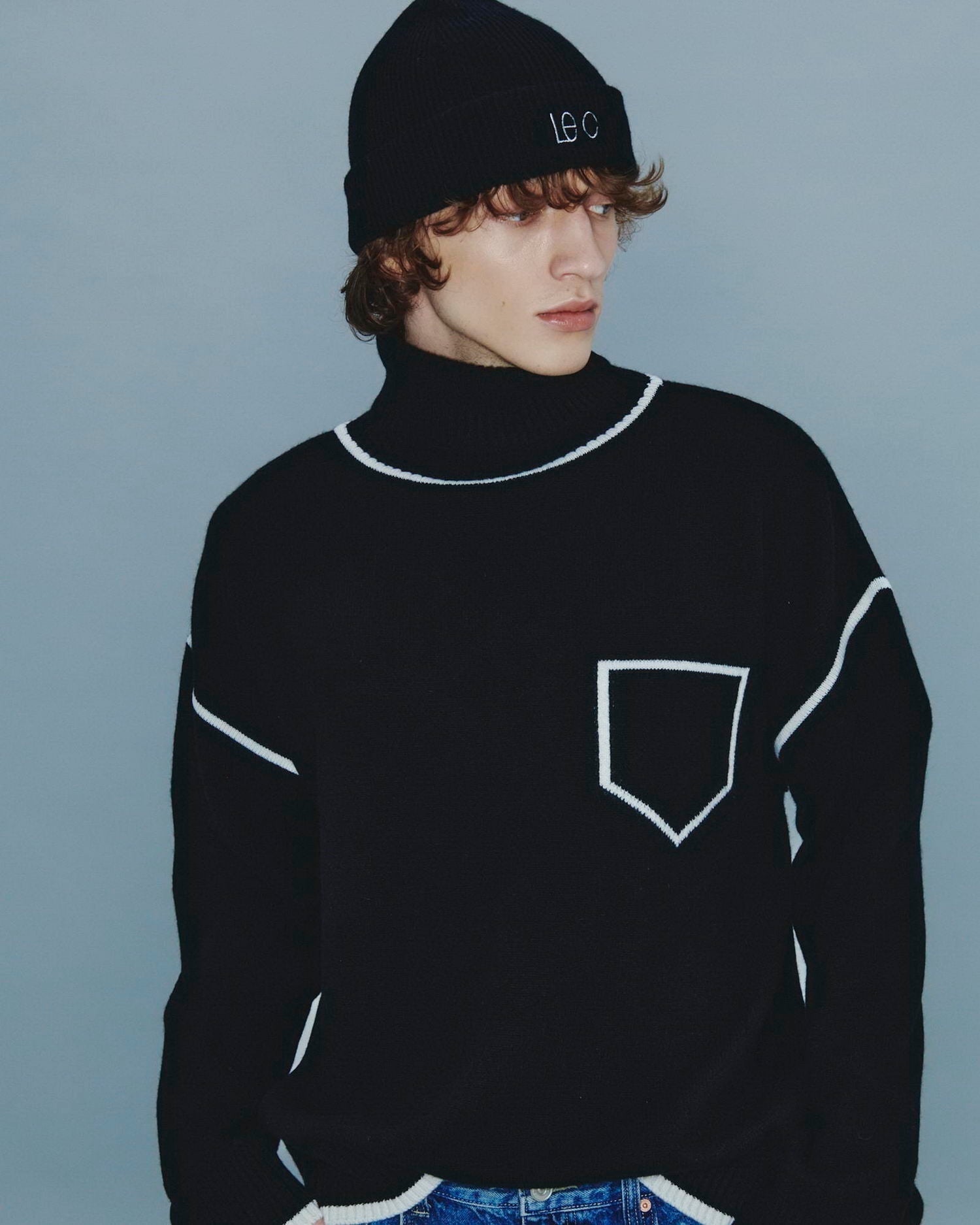 Modern and minimal turtleneck sweater with contrast intarsia. Dropped shoulders and loose sleeves enhance the luxurious and laid-back silhouette. Made of 100% Mongolian sustainable cashmere, giving it a extremely soft touch.