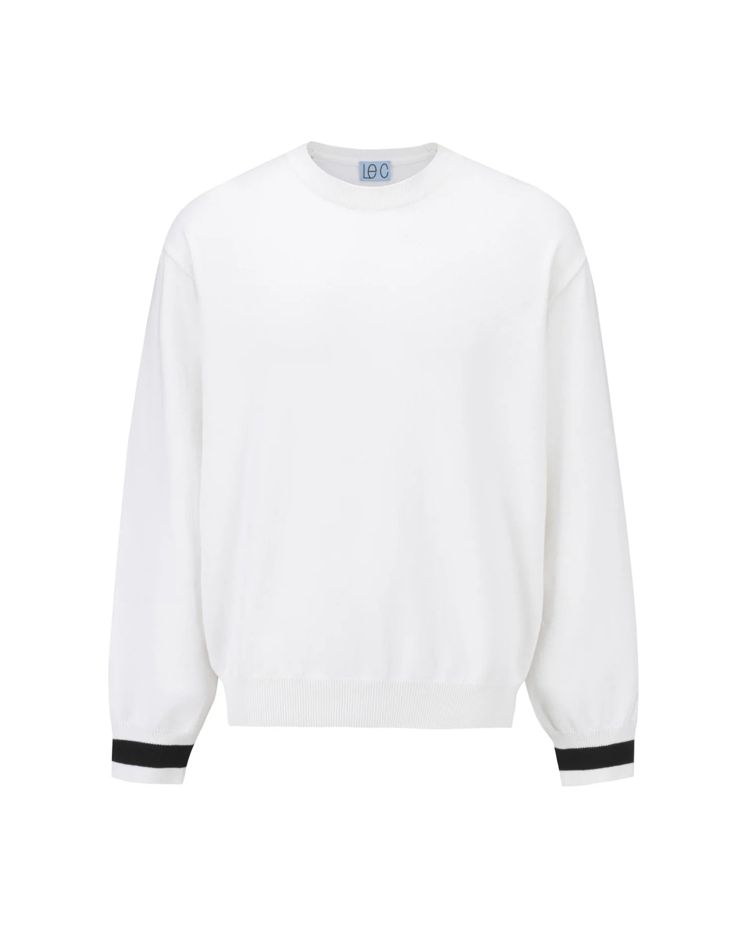 Everyday essential to wear all year round. This sweater features unisex sizing, contrast tipping of the ribbed cuffs and a signature circle stitch at center back neck. The blend of cotton and cashmere creates a soft and naturally luxurious silhouette.