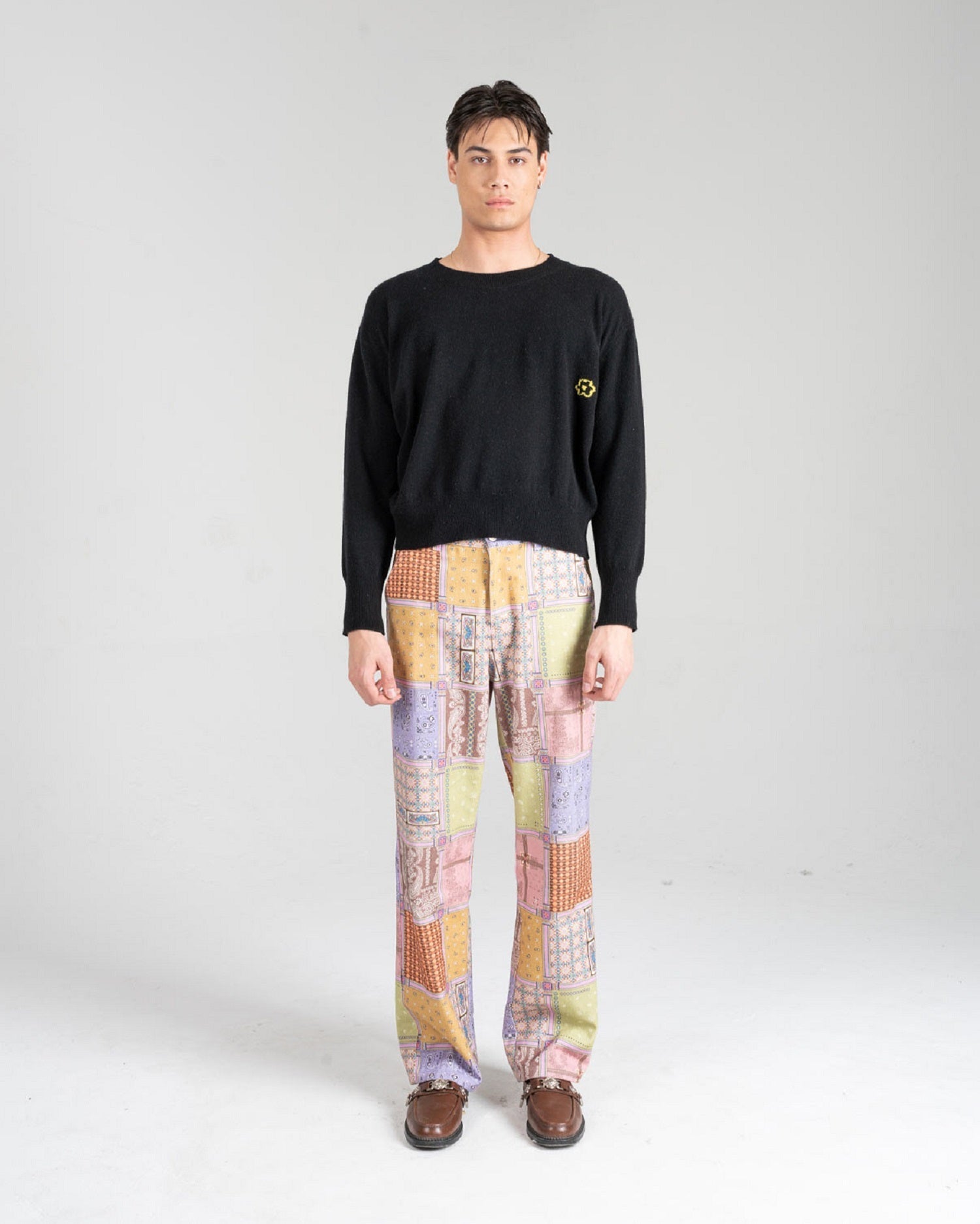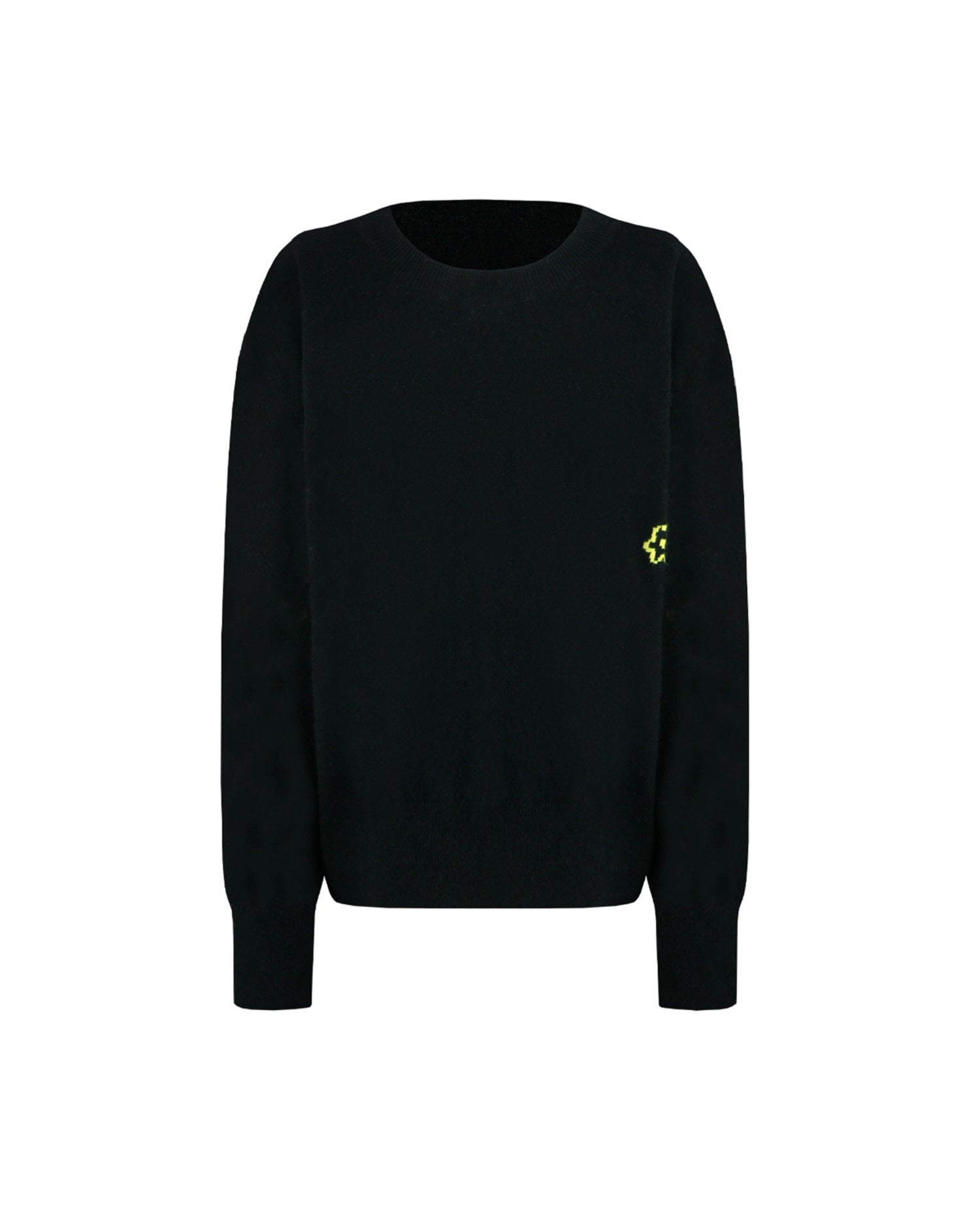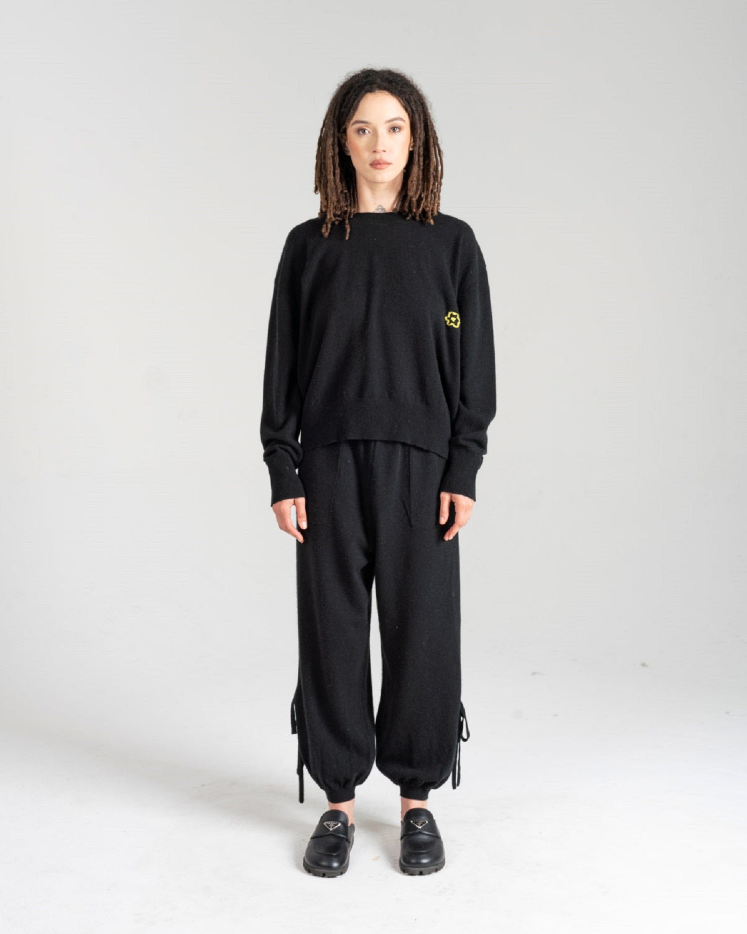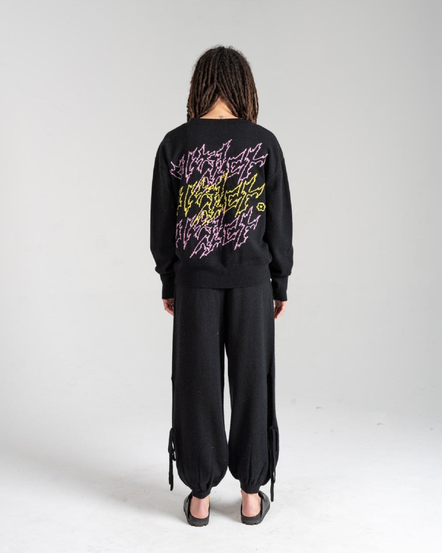 Introducing a uniquely crafted sweater with striking graphics by Sundae School. The back of the sweater features a graffiti design of the Korean word for Holy Sh!t, expressing our surprise at its fresh design. The relaxed, oversized silhouette is cut to different lengths at the front and back. Crafted from 100% cashmere, sustainably sourced from Mongolia.