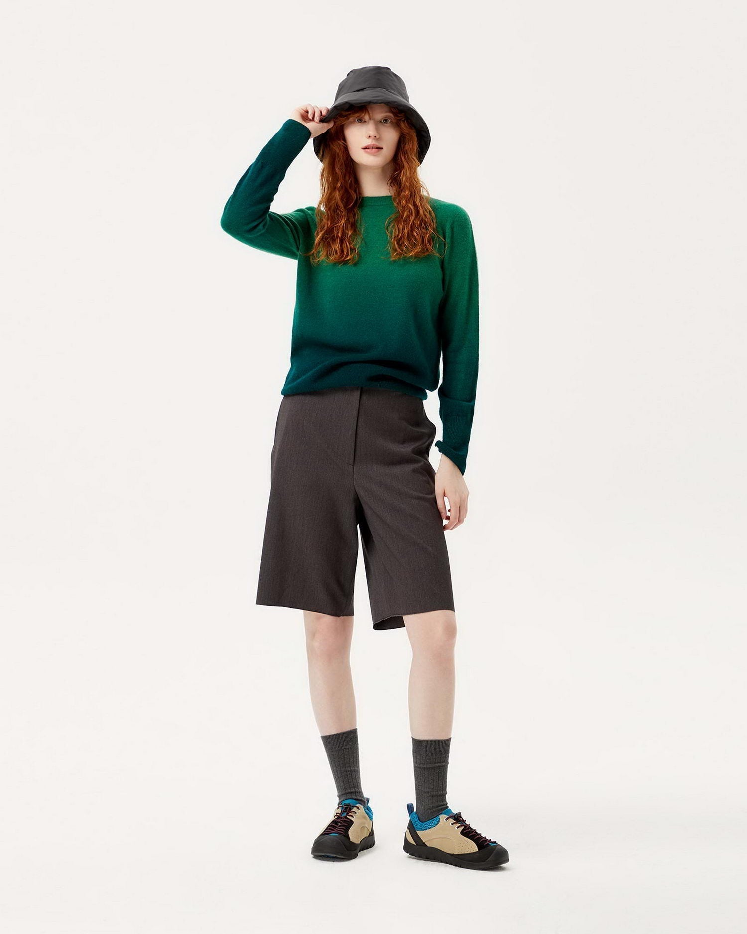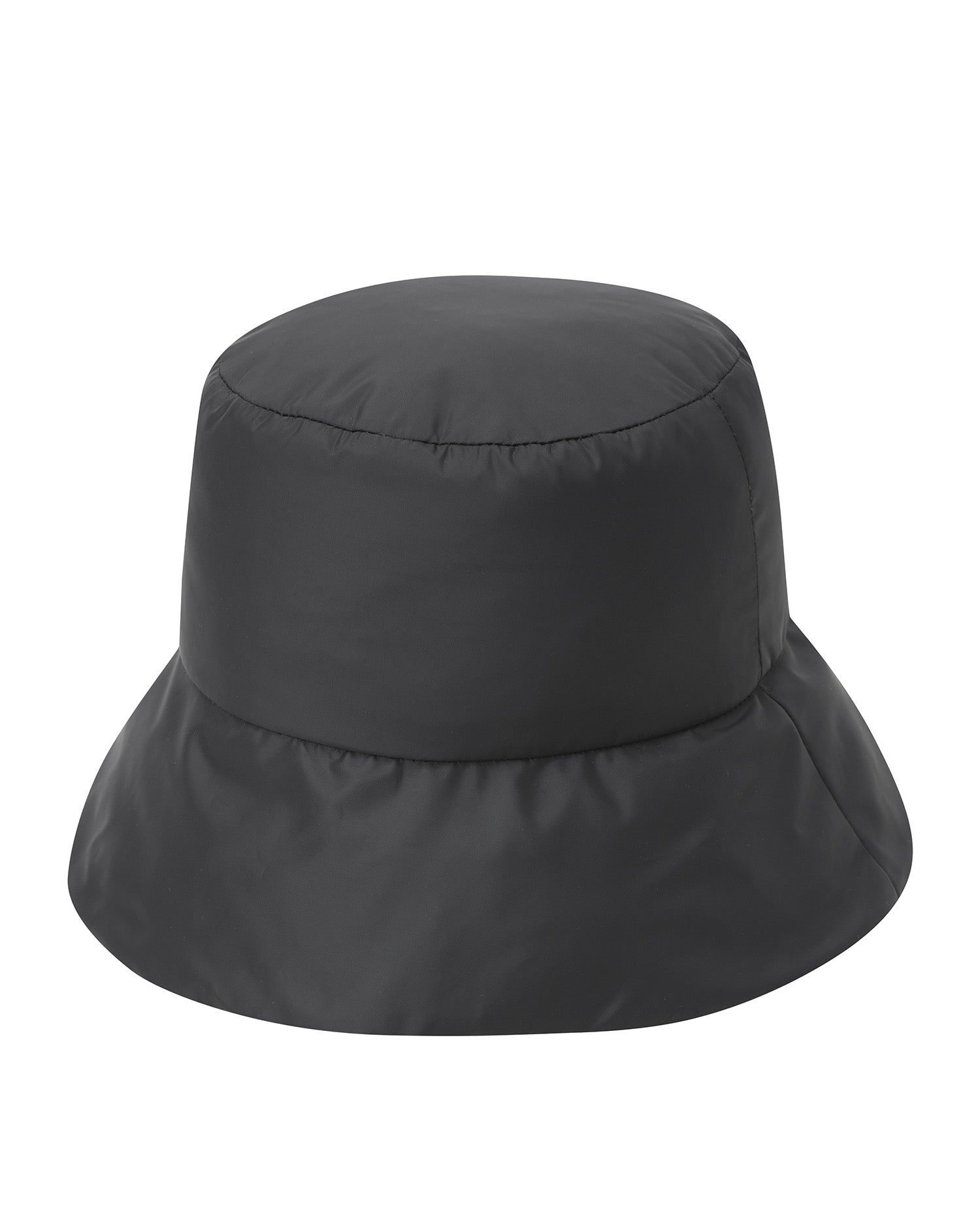 Padded bucket hat that adds a touch of shine to your overall look. Both fabric and insulation are made from recycled materials. The insulation is repurposed from coats that would otherwise be discarded after use. Its basic design and matte finish make it a versatile accessory to complement any look.