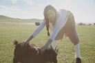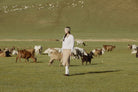 It's gentle on sensitive skin and lightweight, making it highly portable. The harmonious color scheme accentuates the voluminous silhouette. The layered design is stylish, and mother-of-pearl buttons add a touch of elegance.