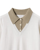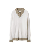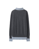 This cashmere polo sweater features a striking color scheme. Crafted from 100% Mongolian cashmere, it offers a soft texture and exceptional warmth.