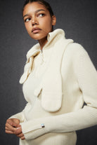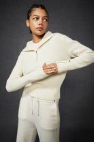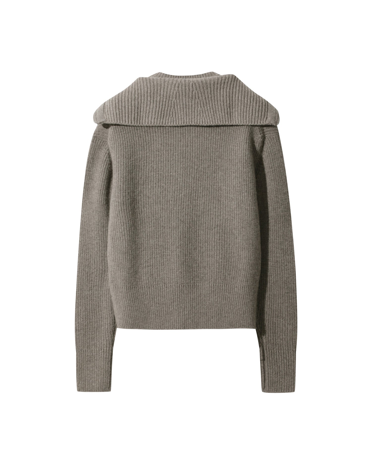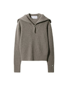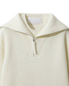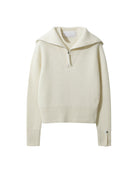 This half-zip sweater creates the look of a stylish layered outfit, adding a sophisticated touch. Crafted from 100% cashmere, it feels exceptionally soft against the skin. The sailor collar and ribbed knit details give it a subtly voluminous yet beautifully structured silhouette.