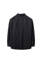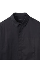 This shirt is completed by reassembling the back and one sleeve of a deconstructed shirt and absorbing it into an oversized silhouette shirt.