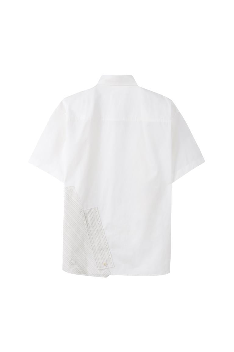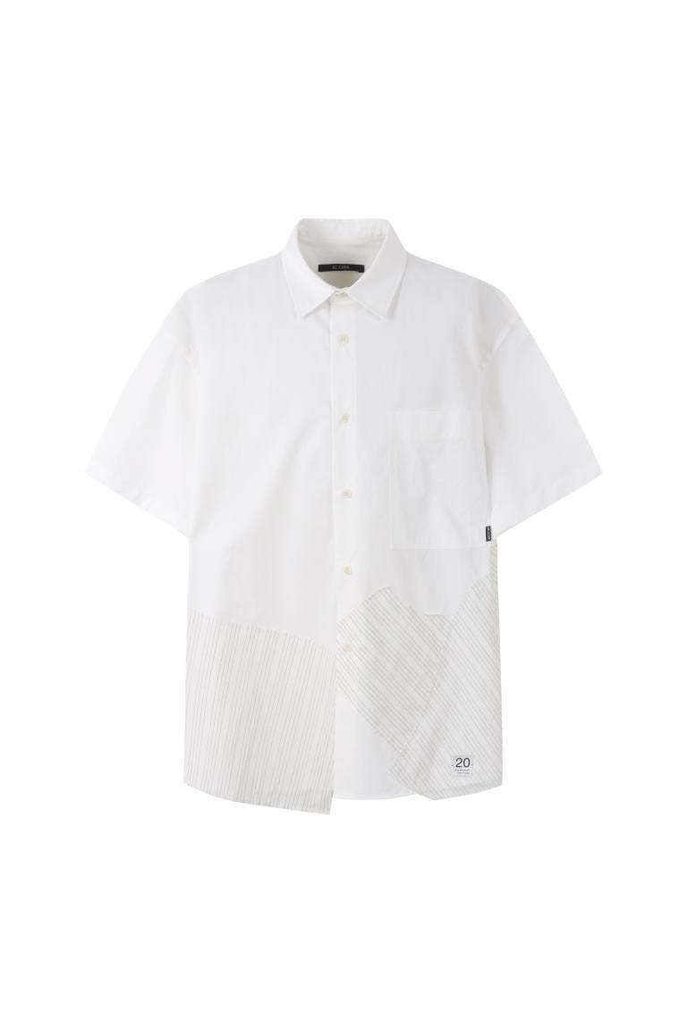 This oversized shirt is crafted from a patchwork of deconstructed shirt pieces. The denim-textured cotton material is accented with striped patterns for a cool and stylish look.