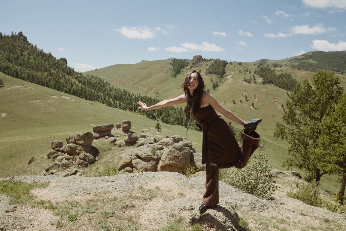 This cashmere H-line skirt features a scarf panel and knot detail. Crafted from 100% Mongolian cashmere, it offers exceptional warmth.