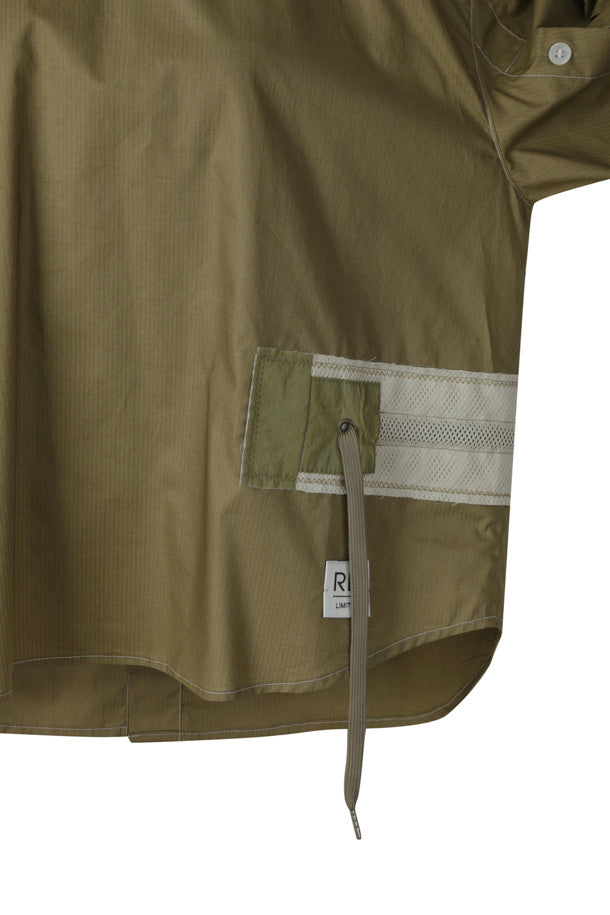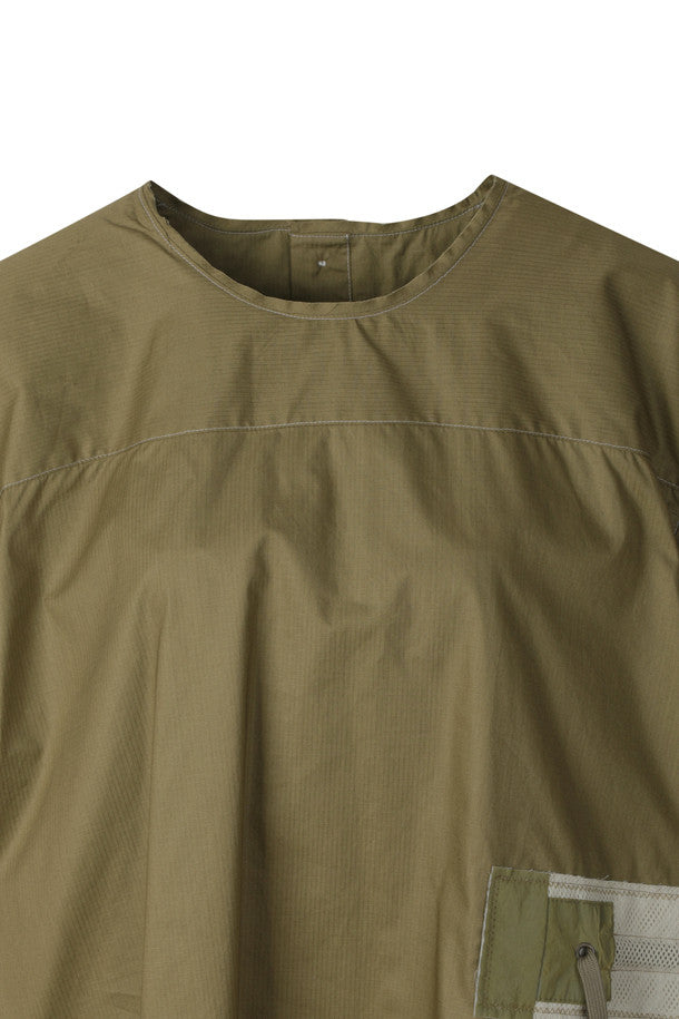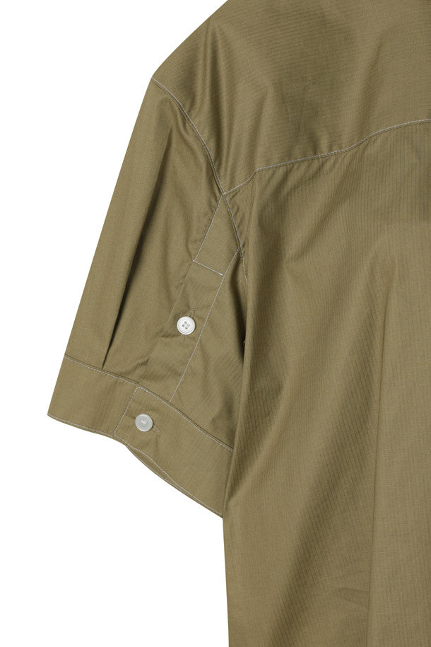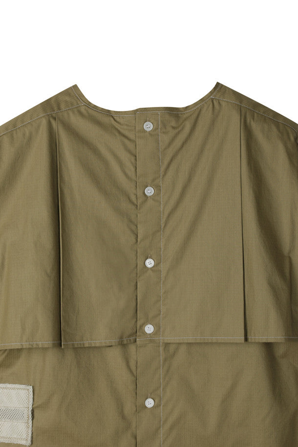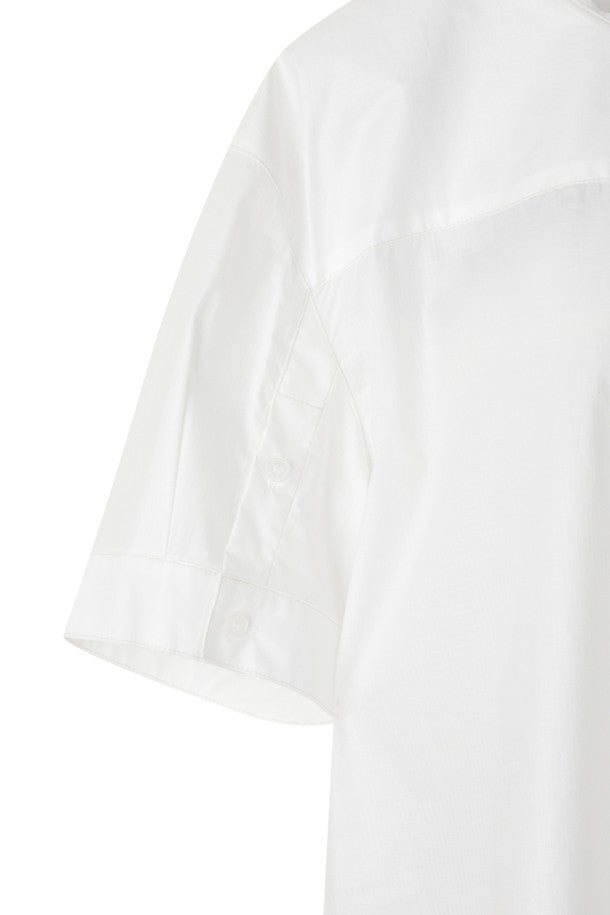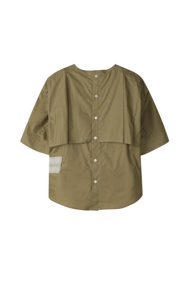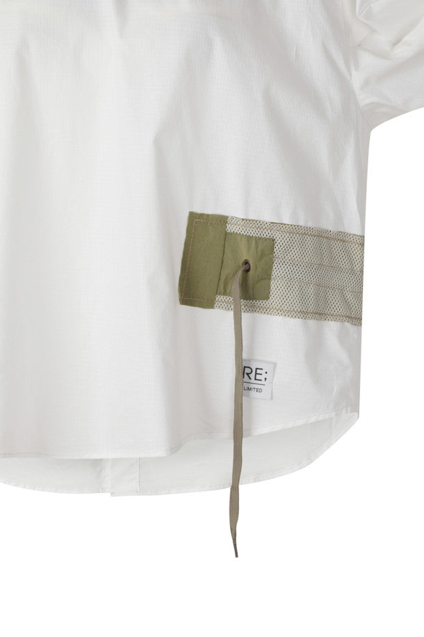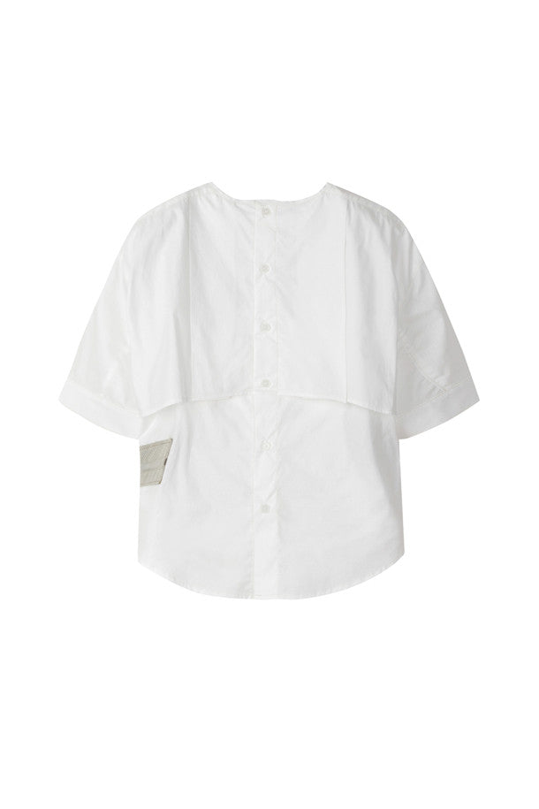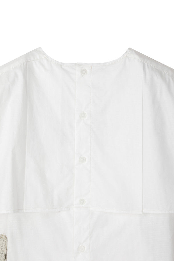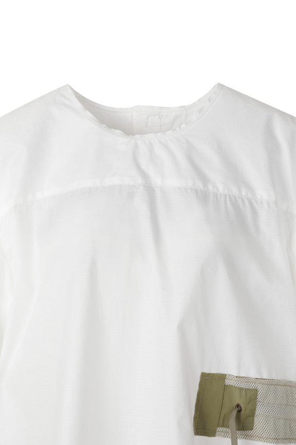 This product incorporates leftover fabric patches from production into the waist detail, creating a unique accent. It's a blouse crafted from organic cotton fabric."
